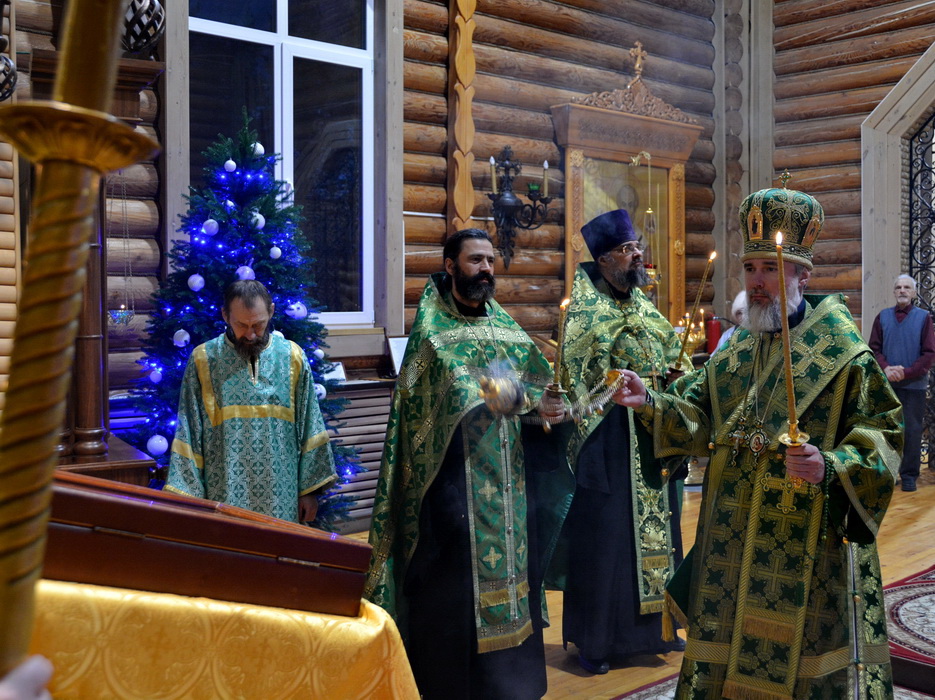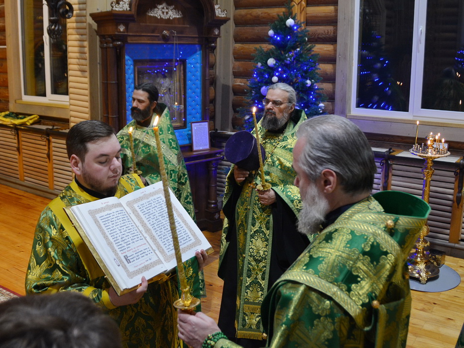 Владыке сослужили секретарь Епархиального управления иерей Владимир Данилко, благочинный Саянского церковного округа иерей Иоанн Гернеший, иерей Евгений Семке.