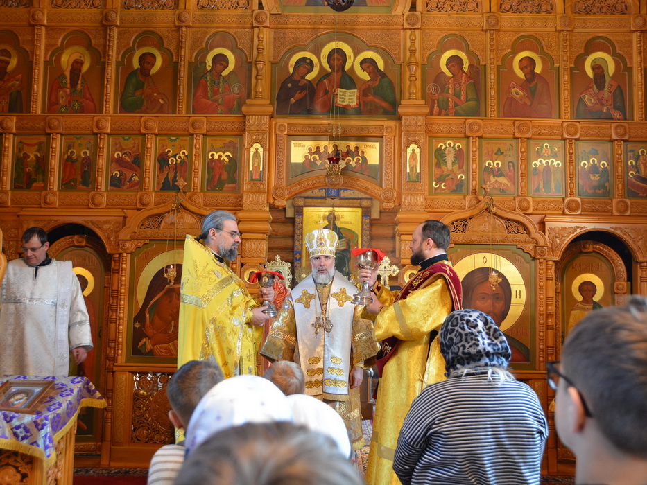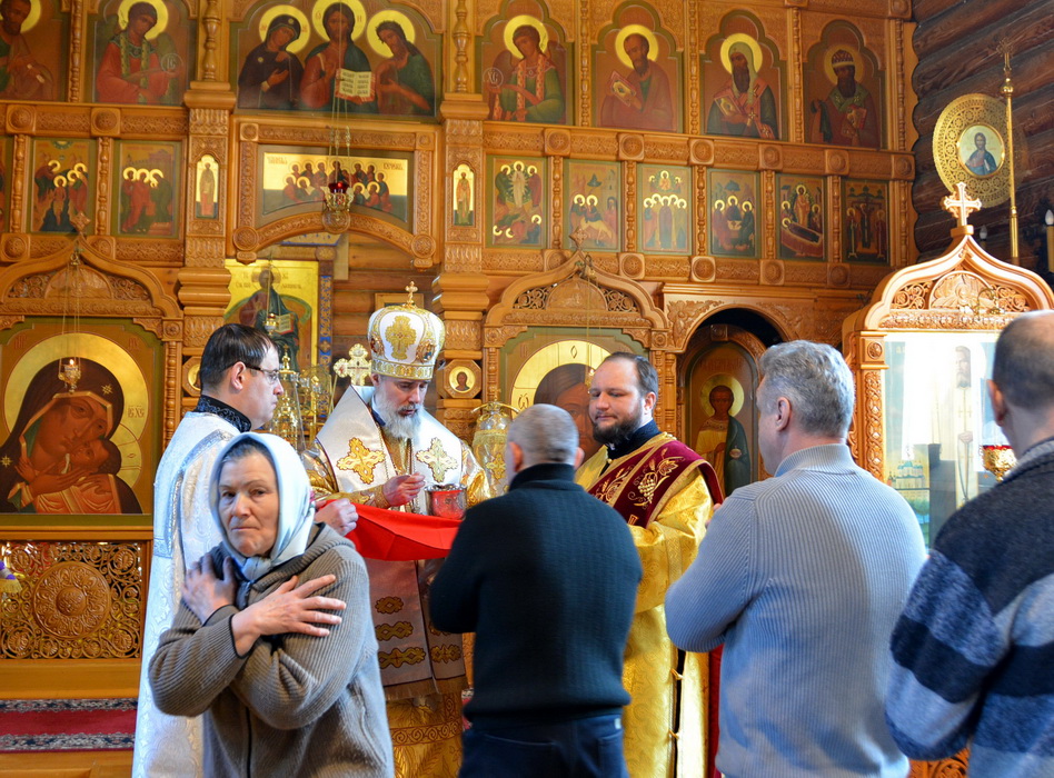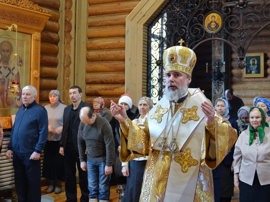 Богослужение состоялось в кафедральном Благовещенском храме в городе Саянске. Владыке сослужили секретарь Епархиального управления иерей Владимир Данилко, благочинный Саянского церковного округа иерей Иоанн Гернеший, иерей Евгений Семке.