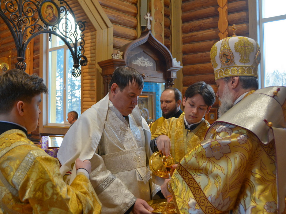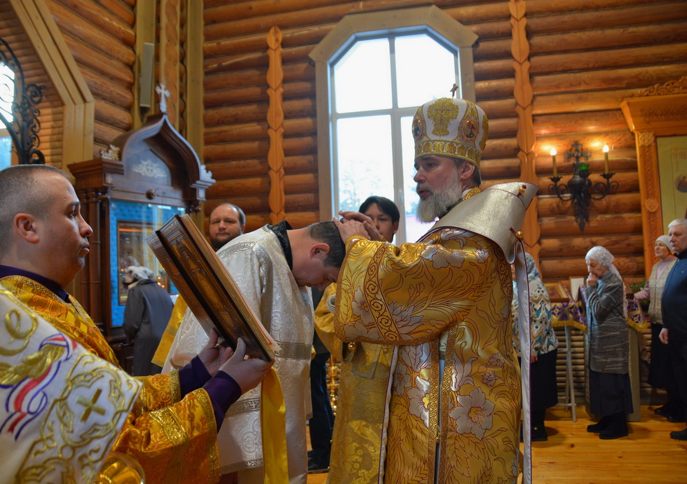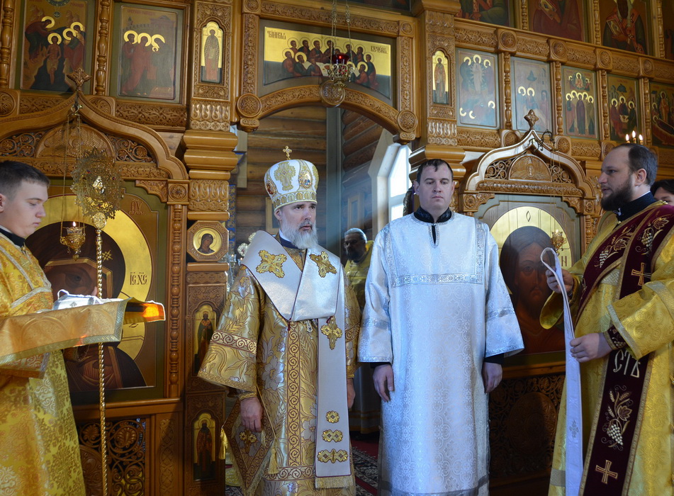 За богослужением Владыка рукоположил в сан диакона прихожанина Бирюсинского храма в честь Воскресения Христова Андрея Григорьева.