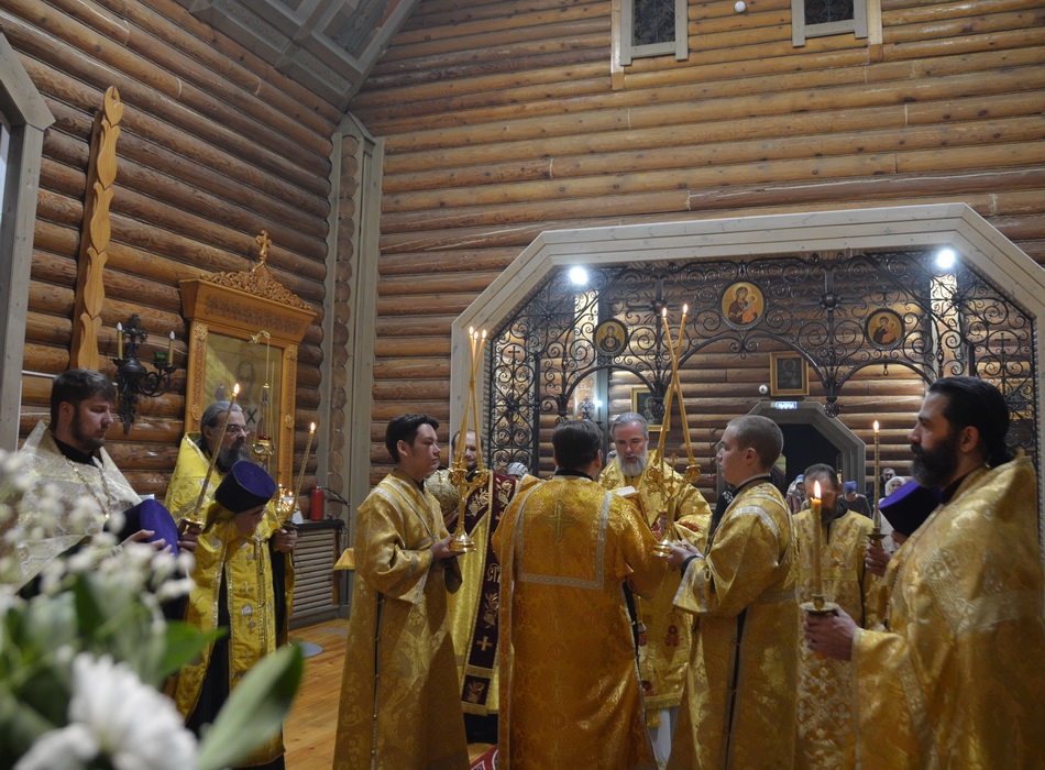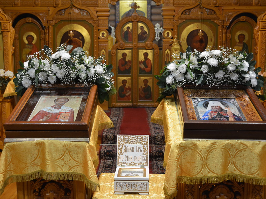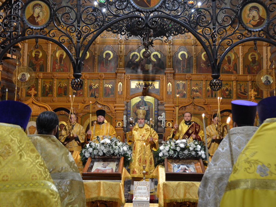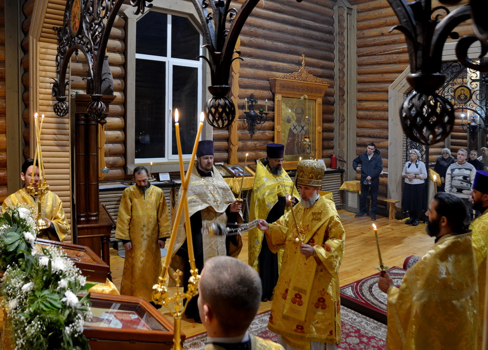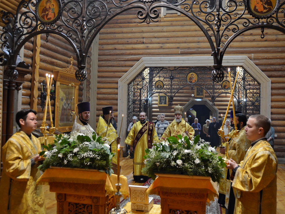 На Утрени епископ Алексий вынес из святого алтаря в центр храма ковчег с частицей мощей святителя Николая Чудотворца. Святыня была доставлена в храм в рамках миссионерского Крестного хода в честь 1700-летия Первого Вселенского Собора, который состоялся в епархии по решению Епархиального совета.