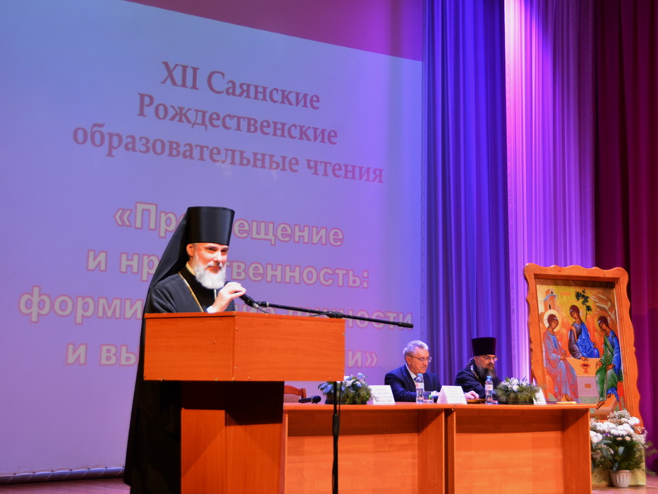 Пленарное заседание прошло в городском ДК “Юность”. Возглавили его епископ Саянский и Нижнеудинский Алексий, мэр города Саянска Александр Владимирович Ермаков, руководитель отдела религиозного образования Саянской епархии иерей Владимир Данилко.