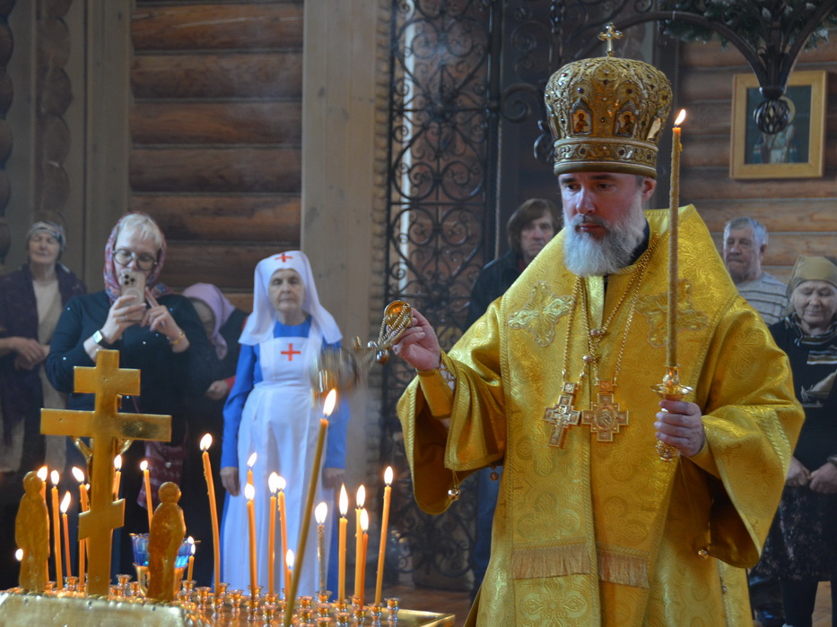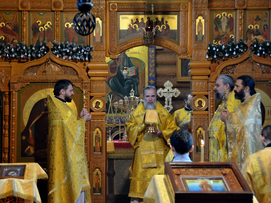Богослужение состоялось в кафедральном Благовещенском храме в городе Саянске. Владыке сослужили секретарь Епархиального управления иерей Владимир Данилко, благочинный Саянского церковного округа иерей Иоанн Гернеший, иерей Евгений Семке.