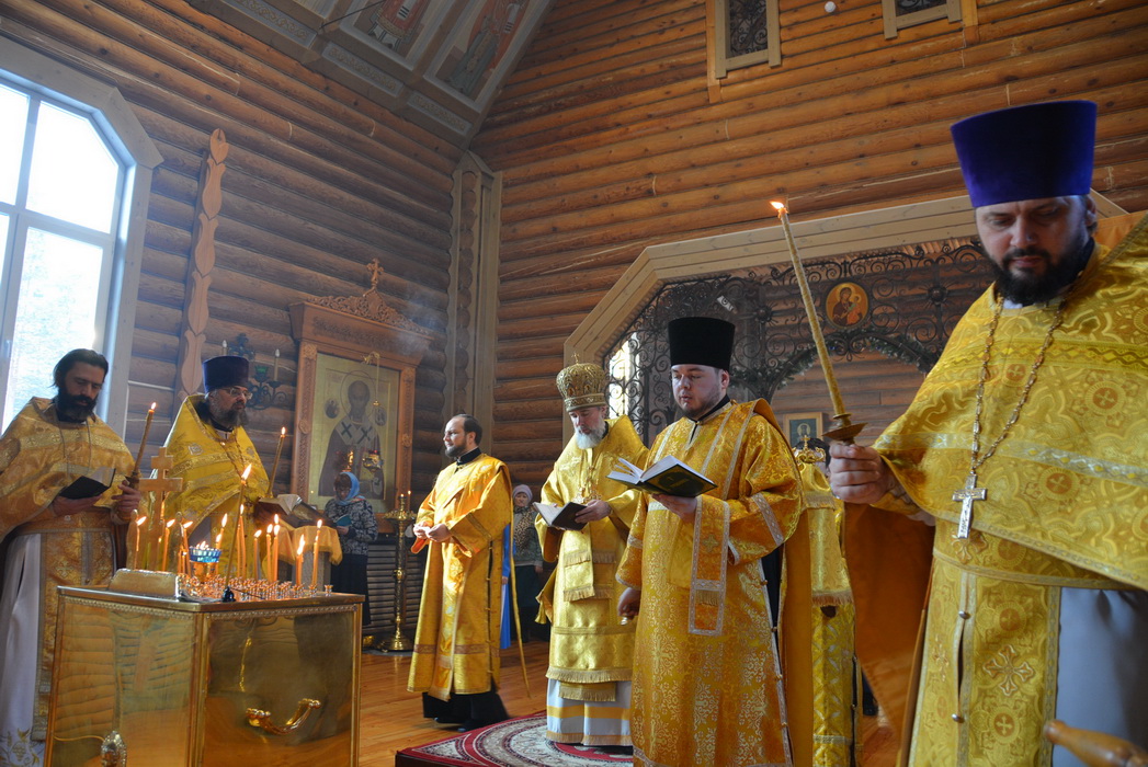 По завершении Литургии было совершено славление святителю Петру, епископ Алексий прочитал молитву чествуемому святому.