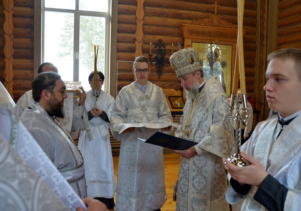 Богослужение состоялось в кафедральном Благовещенском храме в городе Саянске. Владыке сослужили секретарь Епархиального управления иерей Владимир Данилко, благочинный Саянского церковного округа иерей Иоанн Гернеший, клирик Тулунского храма в честь Покрова Божией Матери иерей Леонид Щербаков.