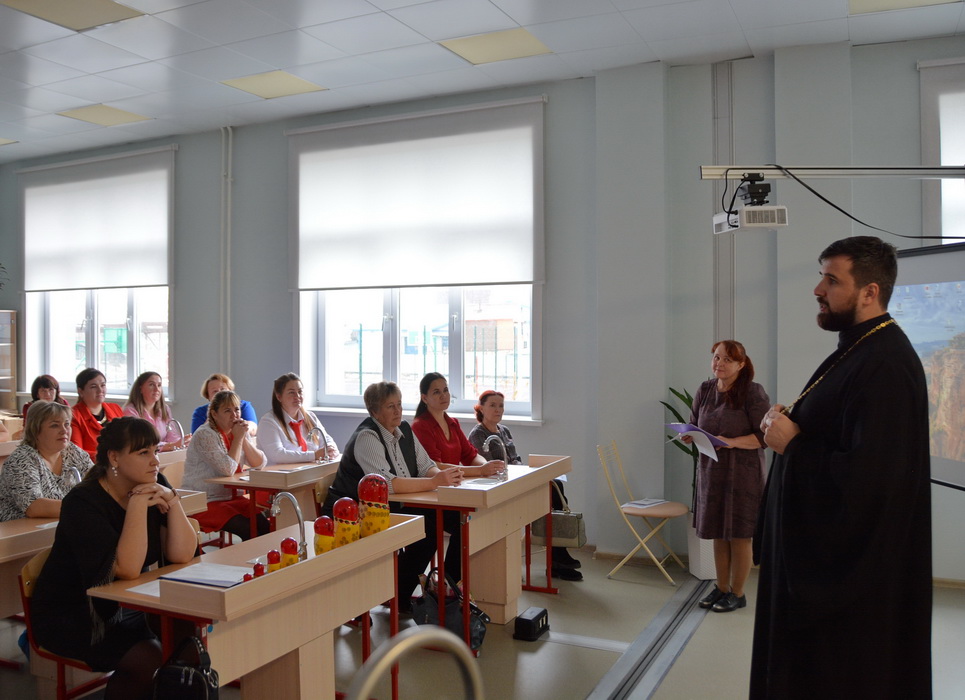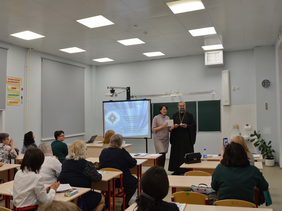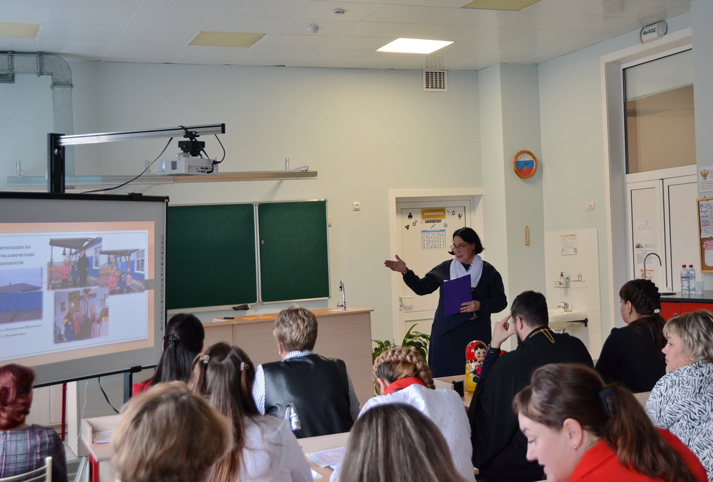 На секции «Духовно-нравственное воспитание в школе и организациях дополнительного образования: опыт и перспективы» были заслушаны 16 докладов учителей общеобразовательных школ, педагогов дополнительного образования, заведующего отделом обслуживания Центральной городской библиотеки. Курировали работу секции заместитель председателя по НМР Комитета по образованию Зиминского городского округа Надежда Николаевна Ланкина и секретарь Епархиального управления, руководитель отдела религиозного образования и катехизации Саянской епархии иерей Владимир Данилко.