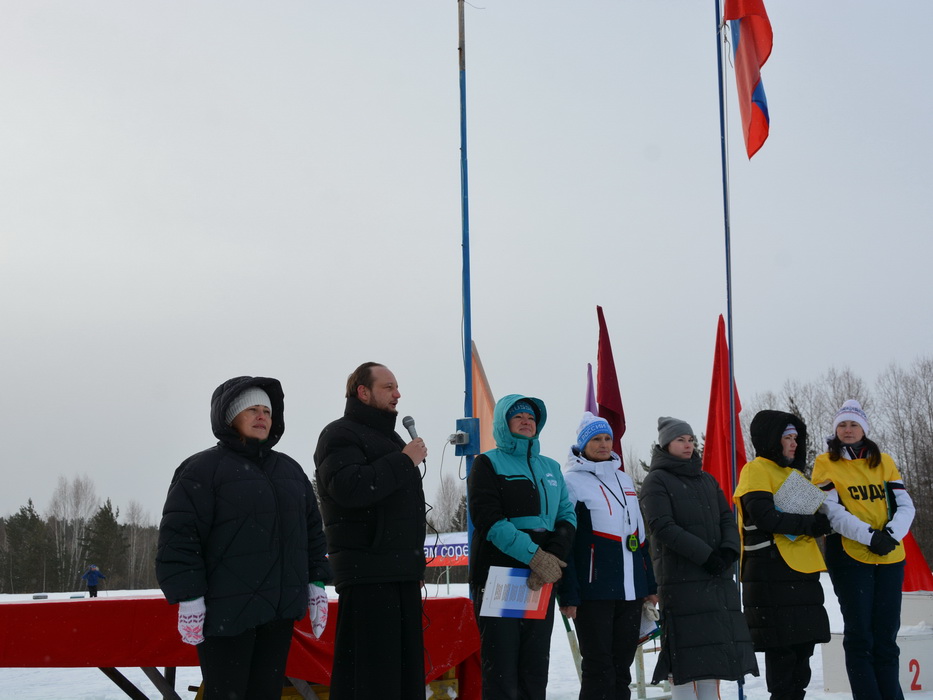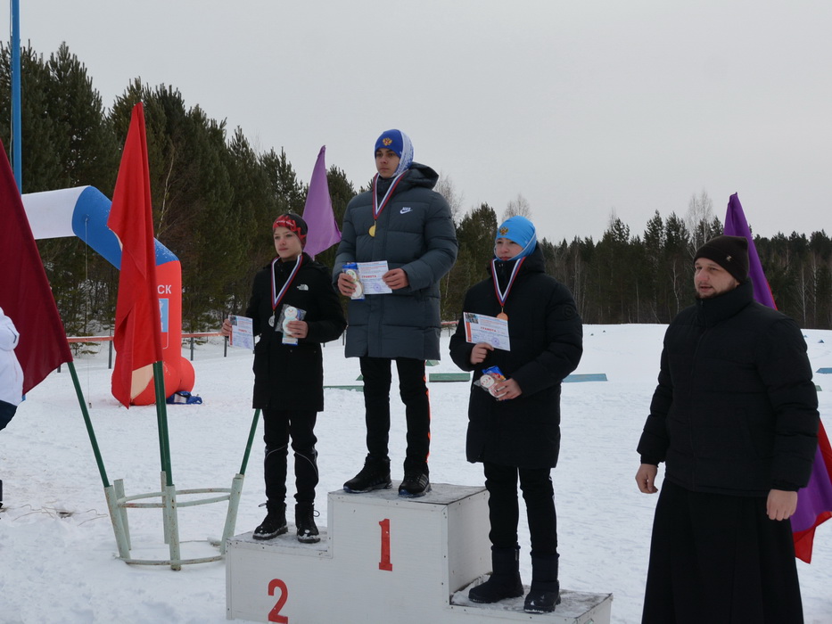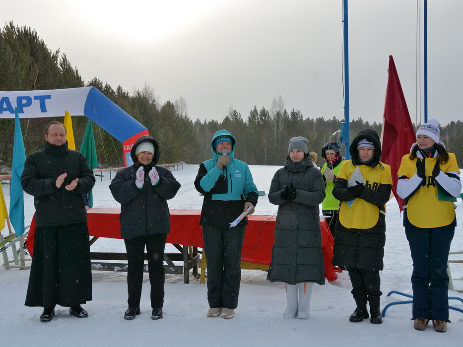 Перед стартом участников первенства от Саянской епархии приветствовал председатель комиссии Саянской епархии по вопросам взаимодействия с учреждениями физической культуры и спорта диакон Иоанн Пилипчук. После соревнований отец диакон вместе с начальником отдела по физической культуре, спорта и молодежной политики администрации Саянска Ж.Б.Евдокименко вручил награды победителям. Медали, грамоты и призы были подготовлены Саянской епархией. Призёры и юные участники соревнований получили специально приготовленные имбирные пряники в виде снеговика.