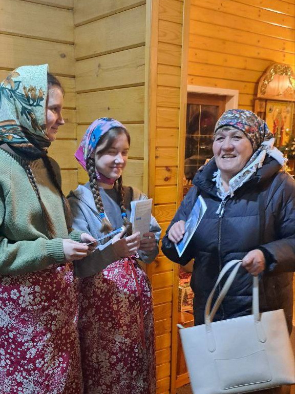 Православные приходы Саянской епархии приняли участие в просветительской акции по распространению информационных буклетов Синодального миссионерского отдела о праздниках Рождества Христова и Крещения Господня. Макет буклета был направлен настоятелям храмов миссионерским отделом епархии. Распечатанные буклеты раздавались в храмах после праздничного богослужения и в течение дня 7 января. Руководитель отдела по делам молодёжи иерей Владимир Чичков организовал раздачу буклетов участниками действующего при Свято-Никольском храме в селе Худоеланское молодёжного клуба. 8 января молодые люди вместе со священником вручали буклеты на улицах села.