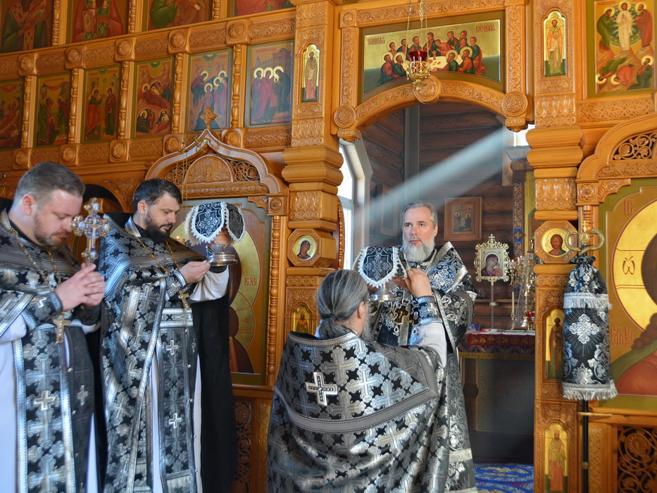 Богослужение возглавил епископ Саянский и Нижнеудинский Алексий. Владыке сослужили секретарь Епархиального управления иерей Владимир Данилко, благочинный Саянского церковного округа иерей Иоанн Гернеший, протоиерей Павел Талалаев.