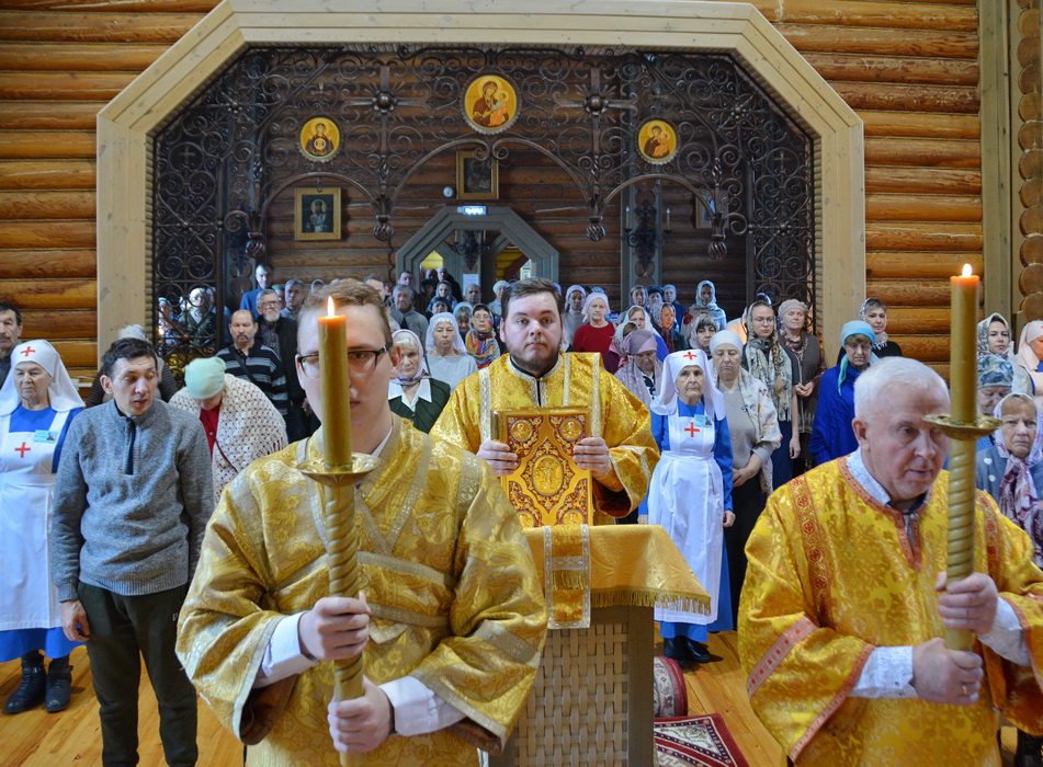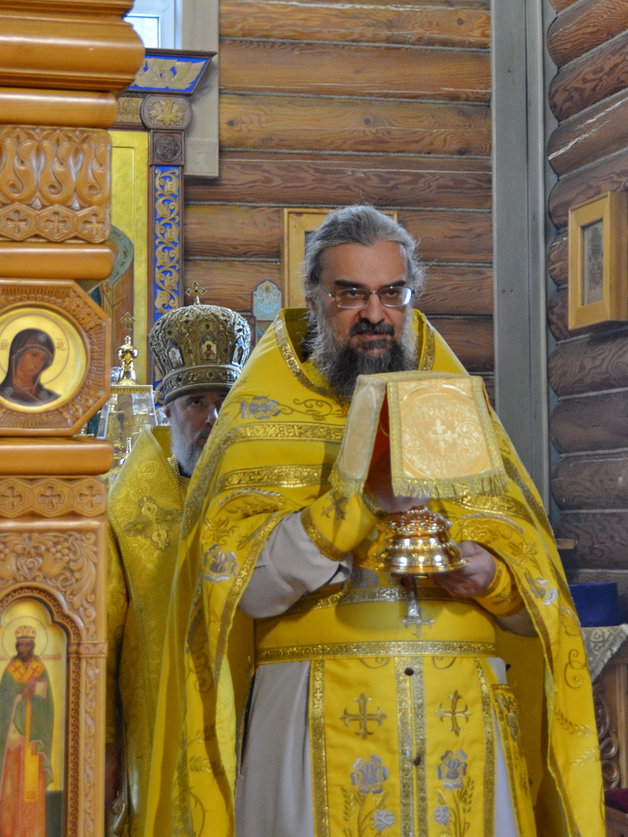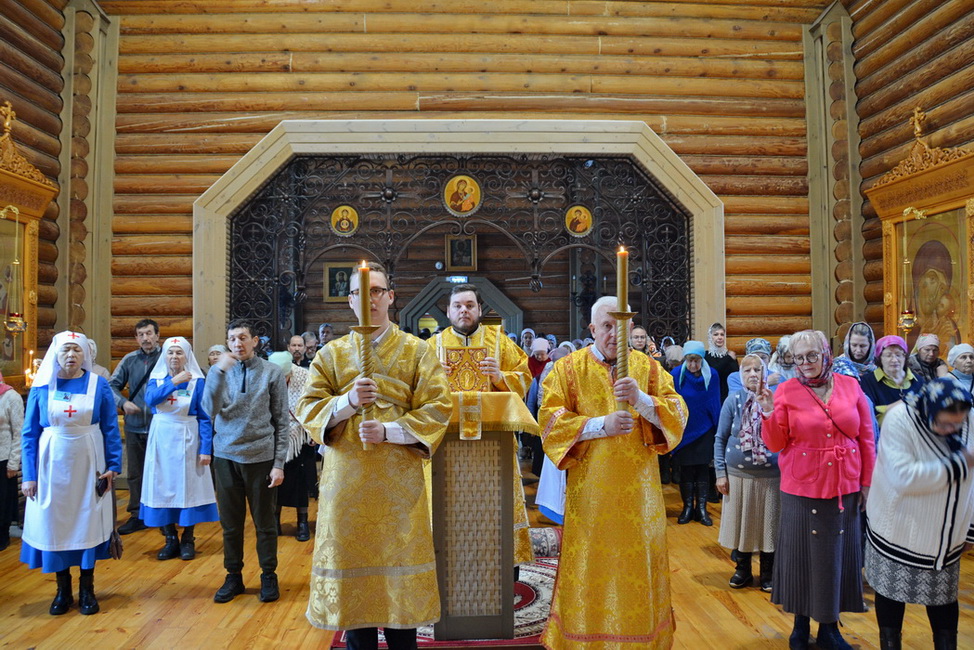 Богослужение состоялось в кафедральном Благовещенском храме в городе Саянске. Владыке сослужил секретарь Епархиального управления иерей Владимир Данилко.