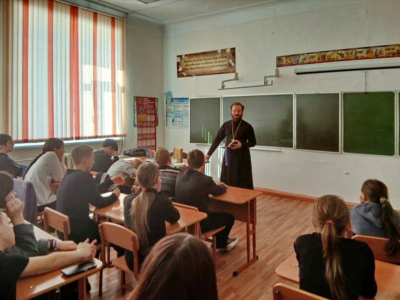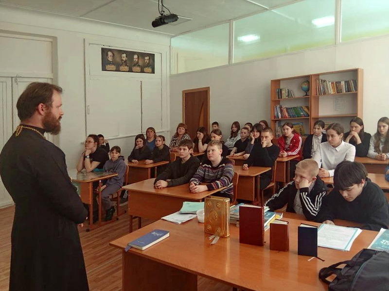 12 марта 2026 года руководитель епархиального отдела по делам молодёжи иерей Владимир Чичков провёл просветительские беседы, посвящённые Дню православной книги. В Худоеланской основной общеобразовательной школе участниками встречи со священником стали учащиеся пятых – восьмых классов. Священник рассказал ребятам о значимости первой славянской азбуки, созданной святыми равноапостольными Кириллом и Мефодием, об истории выпуска в свет первой на Руси точно датированной печатной книге и о первопечатнике Иване Федорове и представил современные богослужебные книги. После беседы школьники приняли участие в увлекательной викторине, посвящённой словам старославянского языка. Священник предложил школьникам угадать значение различных старославянских слов, используемых в церковнославянском тексте Библии и богослужебных книгах. Например, школьники узнавали, что слово «днесь» означает «сегодня», «глаголет» — «говорит», «присно» — «вечно». Викторина вызвала большой интерес у участников, многие ученики проявили знания и эрудицию, правильно отгадывая значения древних слов.