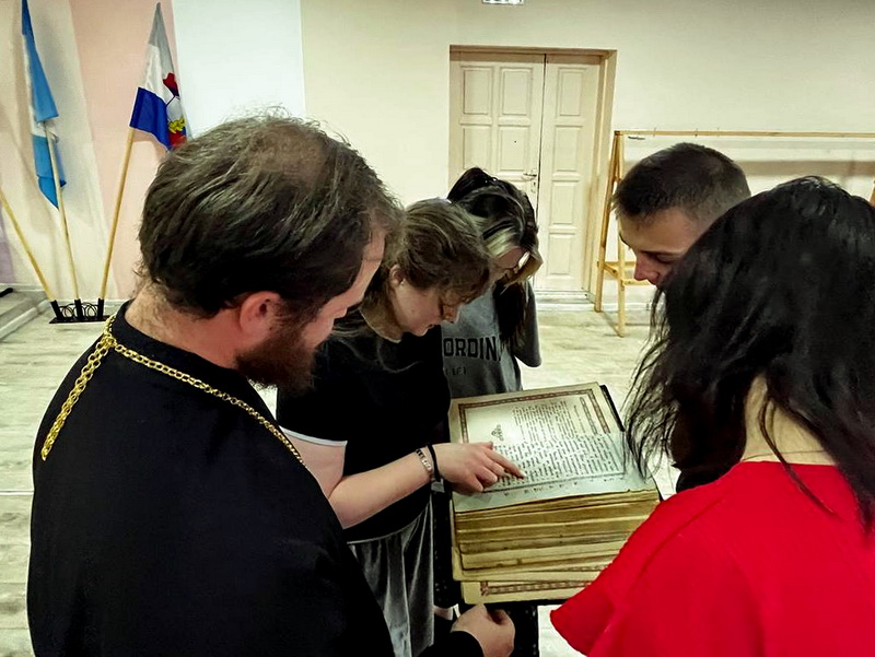 Вечером 12 марта иерей Владимир Чичков провёл беседу о православных книгах со студентами Нижнеудинского техникума железнодорожного транспорта. Священник также представил молодым людям богослужебные книги и обратил особое внимание на святое Евангелия, отметив, что эта книга является святой независимо от того, имеет издание богослужебный характер или нет. Она является свидетельством Боговоплощения, пришествия в мир Сына Божия, и содержит спасительные глаголы жизни.