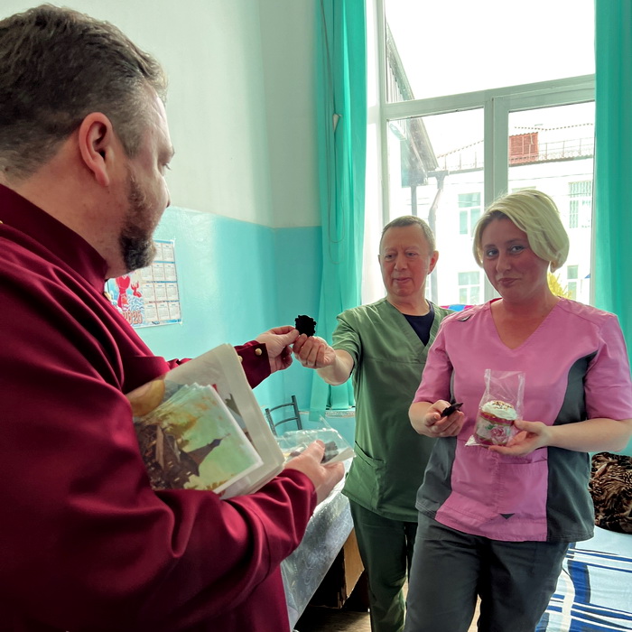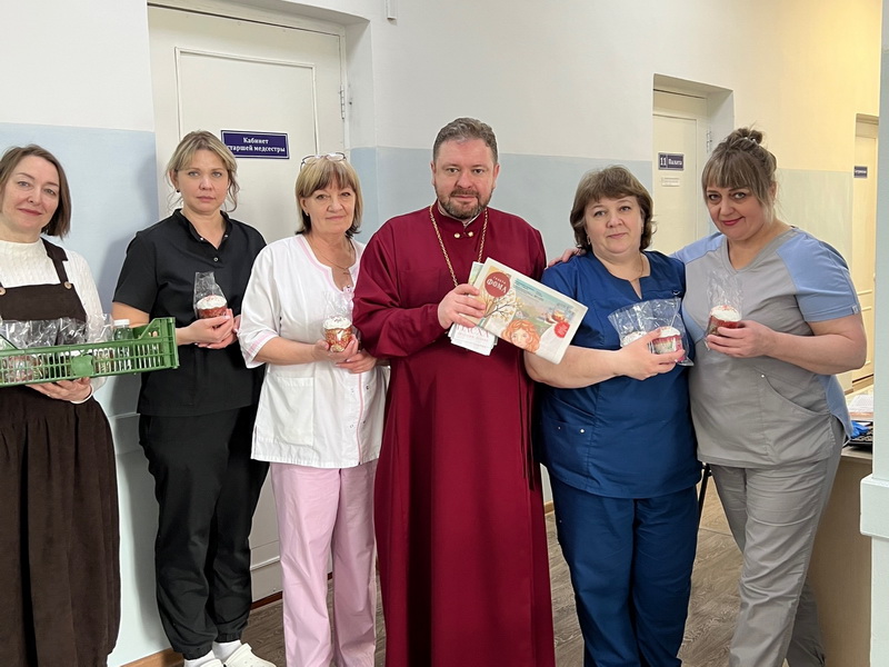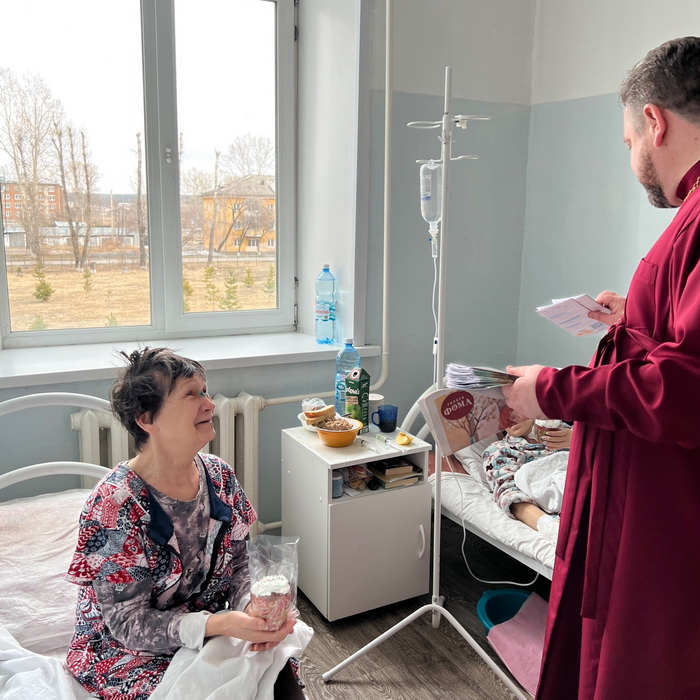 В праздничный день 12 апреля 2026 года руководитель епархиального миссионерского отдела протоиерей Павел Талалаев и настоятель Атагайской церкви в честь иконы Божией Матери “Всех скорбящих Радость” иерей Александр Муляр поздравили со Светлым Воскресением Христовым медицинских работников и пациентов Нижнеудинской центральной районной больницы. Со словами поздравления и доброго пожелания священники вручали людям освящённые куличи, пасхальный выпуск газеты “Фома”, информационные буклеты Синодального миссионерского отдела. Юным пациентам детского отделения священники вручали сладкие яйца и подарки, собранные прихожанами Свято-Никольского храма во время Великого Поста.