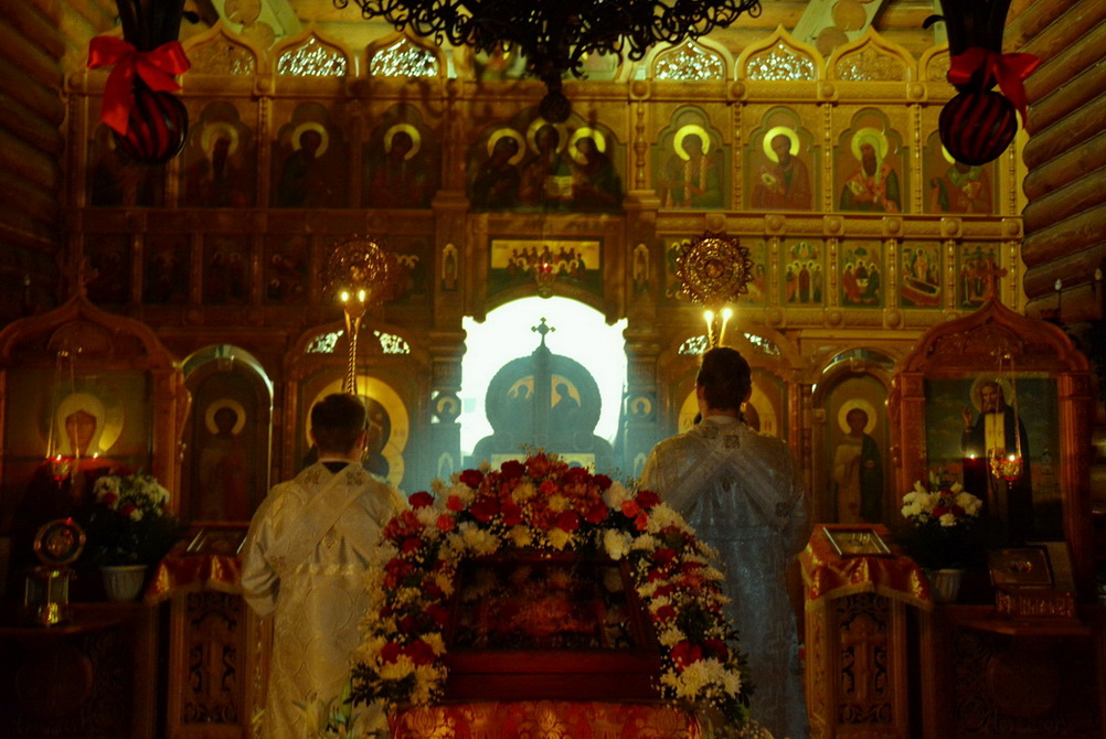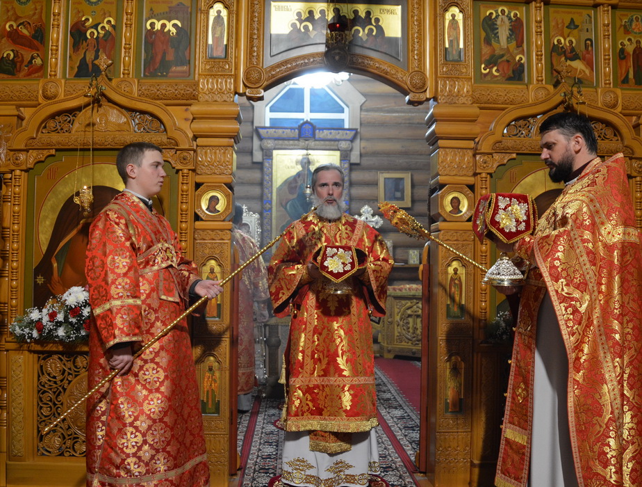 Владыке сослужили секретарь Епархиального управления иерей Владимир Данилко, благочинный Саянского церковного округа иерей Иоанн Гернеший.