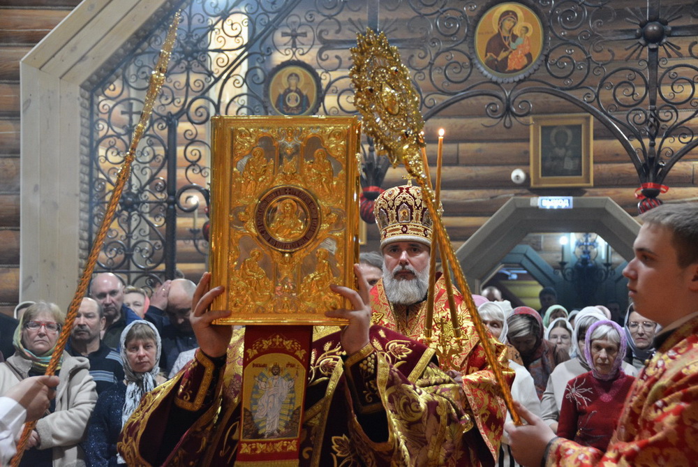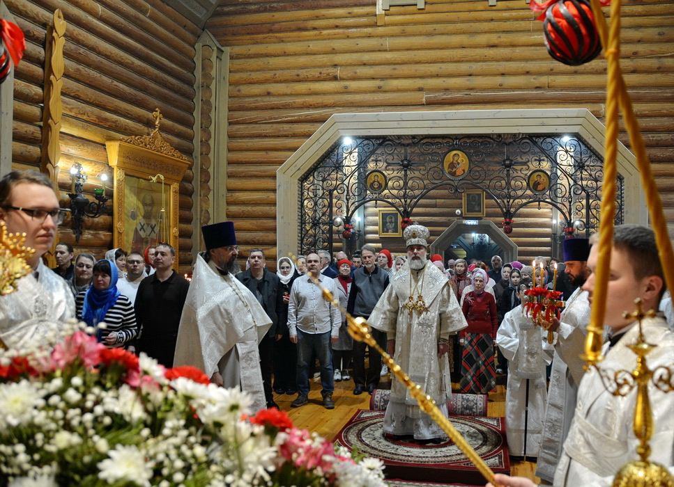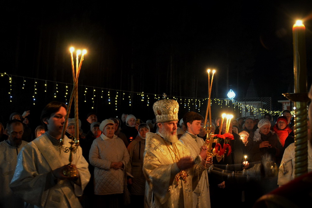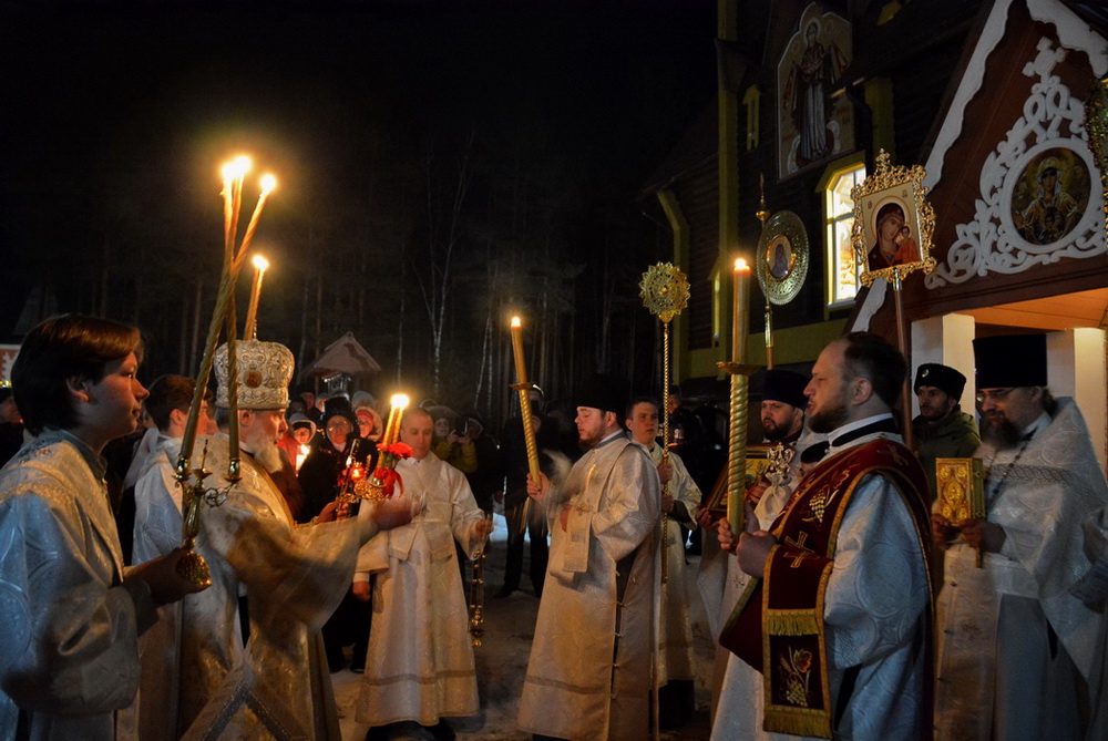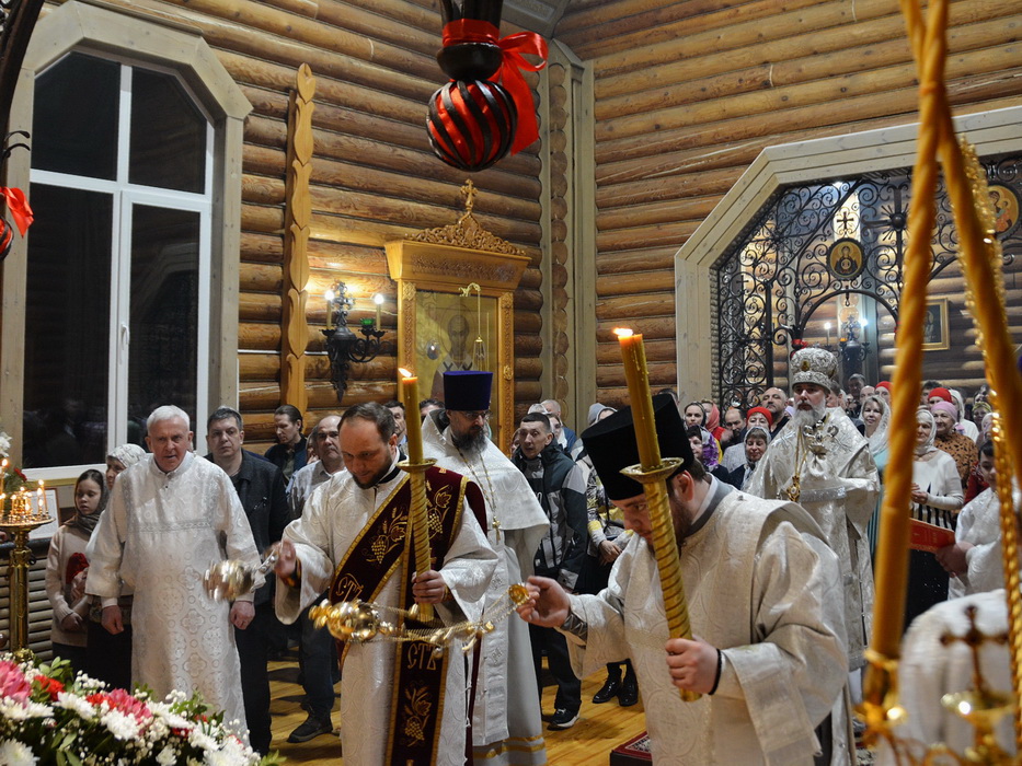 За Пасхальной заутреней епископ Алексий прочитал Огласительное слово святителя Иоанна Златоуста на Святую Пасху.