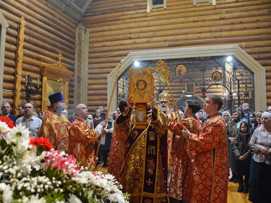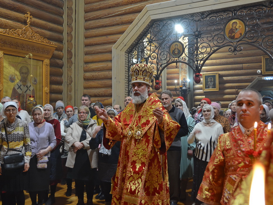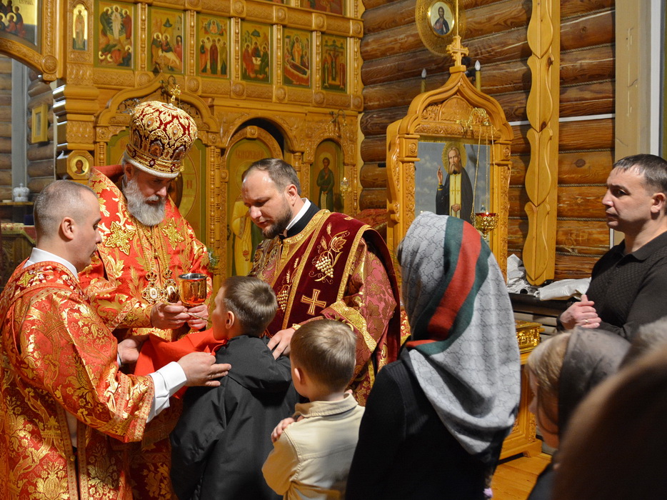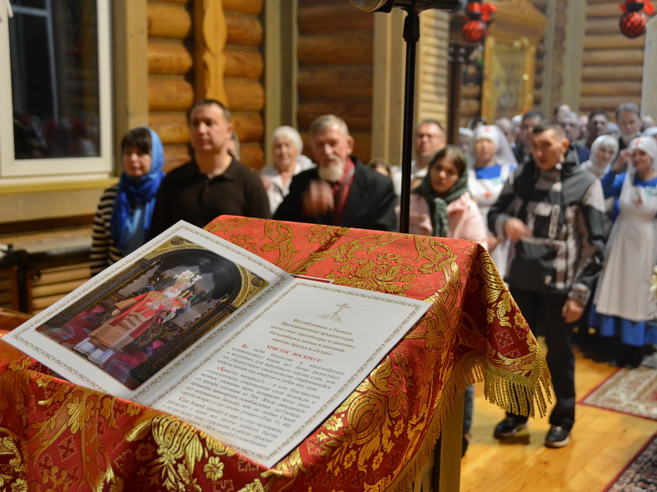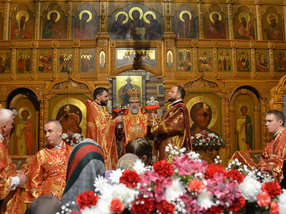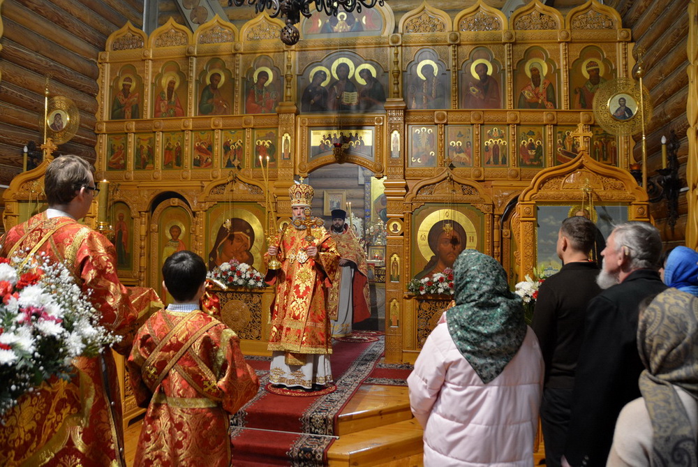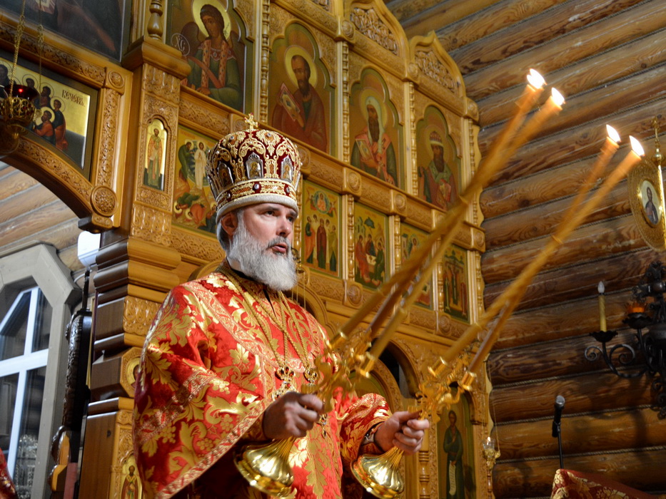 За Литургией на сугубой ектении прозвучали прошения о защите и защитниках Отечества, после чего епископ Алексий вознёс молитву о Святой Руси.