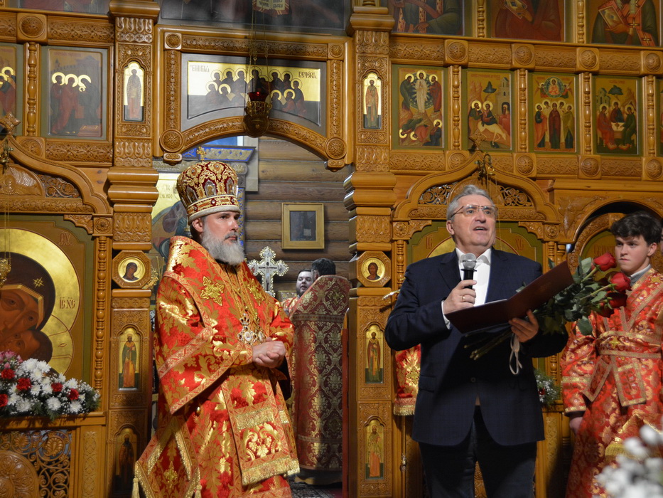 В завершение богослужения Владыка поздравил всех с праздником Светлого Христова Воскресения. Со словами поздравления к Владыке и православным жителям города обратился мэр Саянска Александр Владимирович Ермаков.