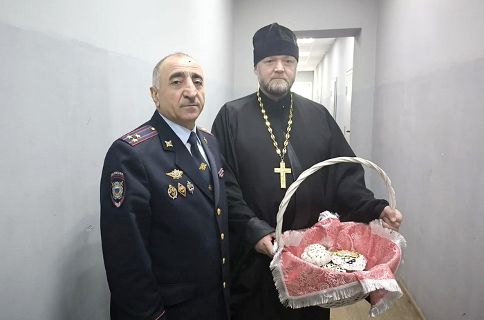 13 апреля 2026 года, в Светлый понедельник, настоятель Нижнеудинского храма в честь святых апостолов Петра и Павла протоиерей Александр Ульянов поздравил с Пасхой Христовой начальника отдела МВД России по Нижнеудинскому району полковника Григорян Хачатура Григорьевича и личный состав отдела. Также священник посетил содержащих в ИВС арестованных граждан и со словами пасхального приветствия вручил всем освящённые куличи и яйца.