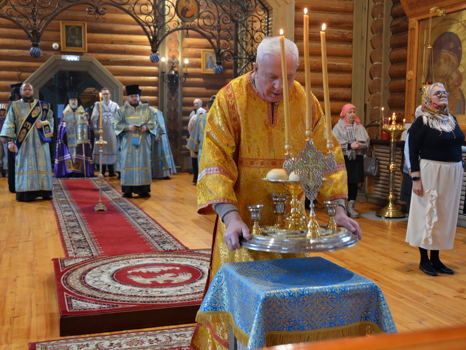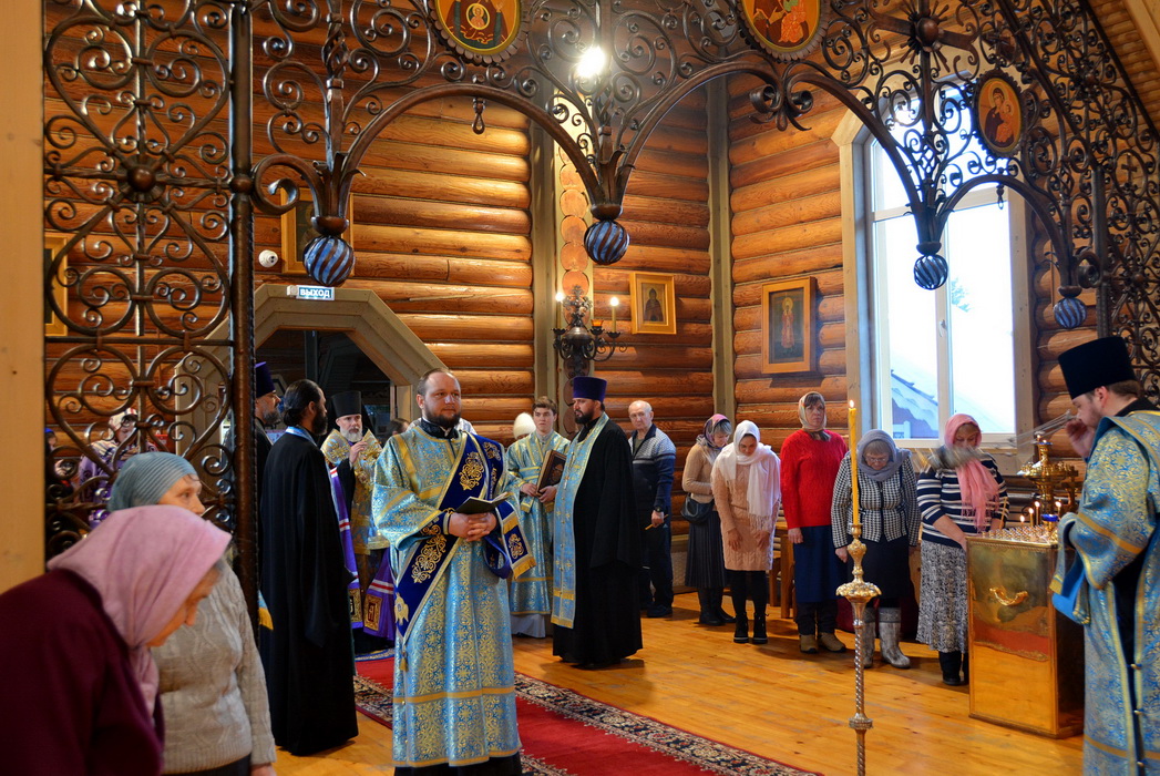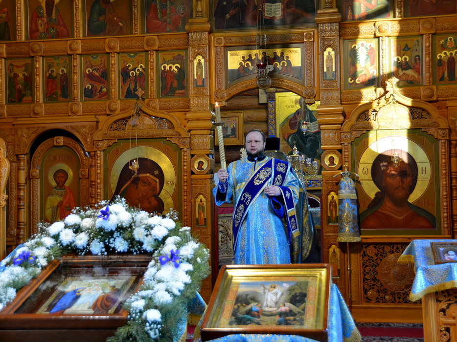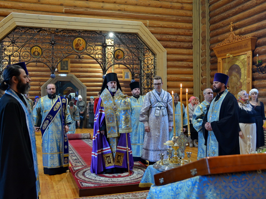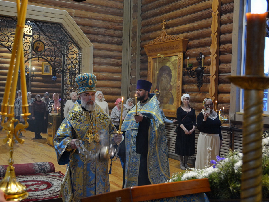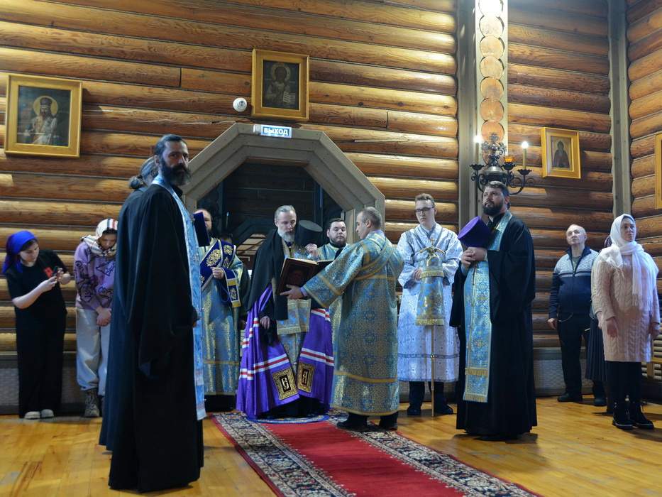 Владыке сослужили секретарь Епархиального управления иерей Владимир Данилко, благочинный Саянского церковного округа иерей Иоанн Гернеший, иерей Евгений Семке.