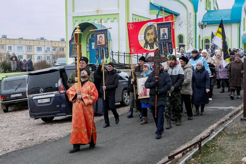 Молитвенное шествие возглавили настоятель Воскресенского храма иерей Владимир Рапацевич, настоятель храма в честь святителя Иннокентия Иркутского иеромонах Иоанн (Хуттер) и настоятель храма в честь Первоверховных апостолов Петра и Павла г. Тайшета иерей Михаил Малетич.