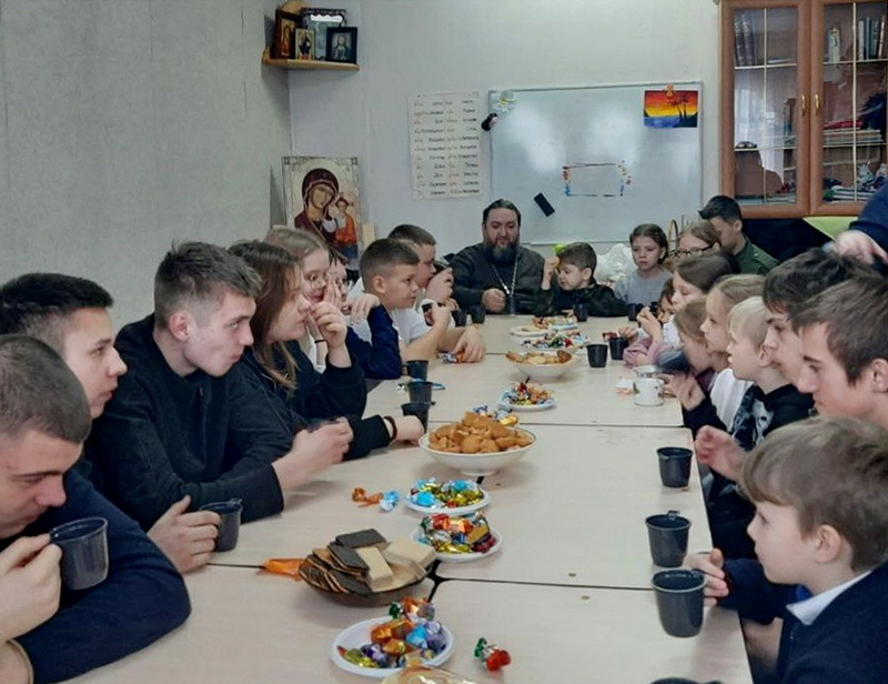 15 января 2026 года после Литургии в Тулунском храме в честь Покрова Божией Матери ученики приходской Воскресной школы поздравили прихожан с праздником Сретения Господня. Дети вручили всем печенье, приготовленное в канун праздника в ходе мастер-класса под руководством Анастасии Ярошевич, и показали Сретенскую сценку кукольного театра, которую подготовили с преподавателями. После этого в классе Воскресной школы состоялось посвящённое Дню православной молодёжи чаепитие с участием юных прихожан, учащейся молодёжи и ребят из казачьих детско-юношеских клубов “Ратник” (г.Тулун) и “Пересвет” (д.Афанасьева). Добрую и содержательную беседу о духовных основах жизни за кружкой чая по благословению настоятеля храма провёл иерей Леонид Щербаков.