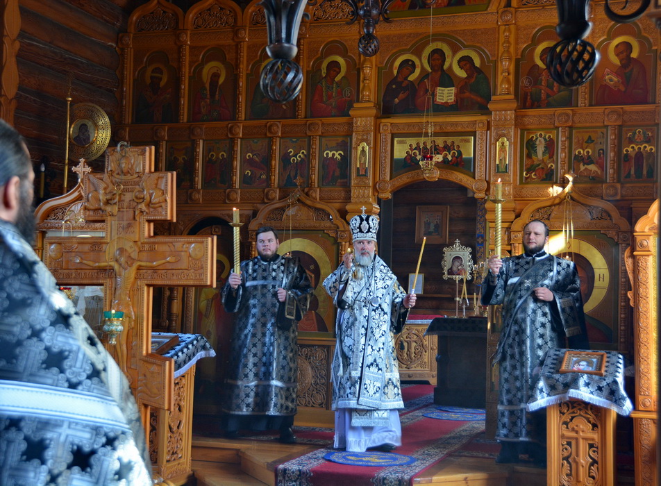 Владыке сослужили секретарь Епархиального управления иерей Владимир Данилко, благочинный Саянского церковного округа иерей Иоанн Гернеший, иерей Евгений Семке.