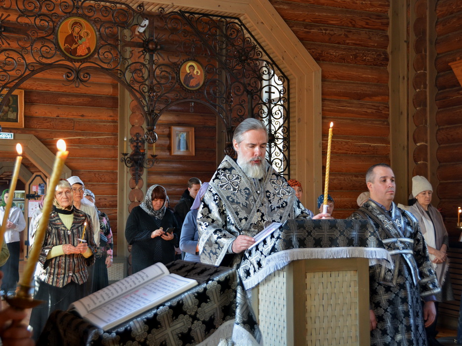 Вечером Воскресного дня 15 марта 2026 года епископ Саянский и Нижнеудинский Алексий совершил в кафедральном Благовещенском храме в городе Саянске вечерню с чтением акафиста Божественным Страстям Христовым (чинопоследование пассии).
