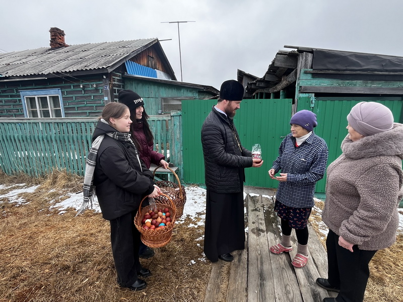 Руководитель епархиального отдела по делам молодёжи иерей Владимир Чичков принял участие в проведении благотворительной акции «Поделись Пасхальной радостью». С 12 по 15 апреля 2026 года совместно с активистами общественной организацией ветеранов священник поздравил с праздником Светлого Христова Воскресения пожилых жителей сёл Худоеланское и Кадуй, Верхний Хингуй и деревни Талый Ключ, которые входят в состав Худоеланского муниципального образования. Участники акции посетили сорок домохозяйств. Отца Владимира сопровождали добровольцы православного молодёжного клуба, действующего при Свято-Никольском храме в селе Худоеланское. Со словами поздравления и добрых пожеланий священник вручил пожилым сельчанам освящённые куличи и пасхальные яйца.