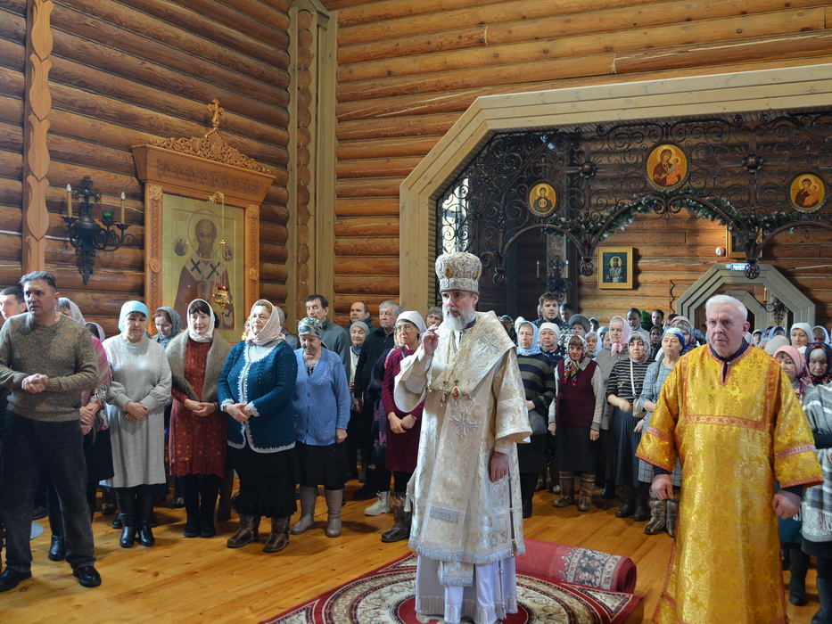 На сугубой ектении прозвучали особые прошения о защите и защитниках Отечества, епископ Алексий вознёс молитву о Святой Руси.