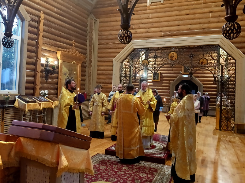Богослужение состоялось в кафедральном Благовещенском храме в городе Саянске. Владыке сослужили благочинный Саянского церковного округа иерей Иоанн Гернеший, иерей Евгений Семке.