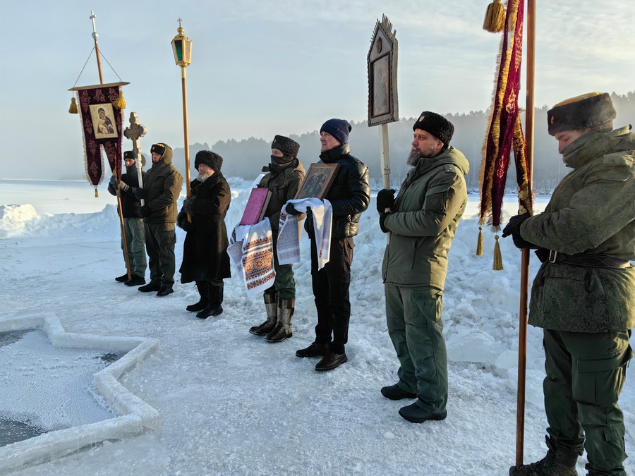 В праздничный день 19 января 2026 года в Тулуне после богослужения в Покровском храме состоялся Крестный ход к традиционно обустроенной по согласованию с администрацией города иордани на реке Ия. В обустройстве иордани участвовали казаки Тулунского казачьего общества “Станица Покровская”. Вместе с прихожанами и казаками участниками молитвенного шествия стали воспитанники детско-юношеских казачьих клубов «Ратник» г. Тулуна и «Пересвет» д. Афанасьева. Крестный ход возглавили настоятель Покровского храма и благочинный Тулунского церковного округа иерей Феодор Корбатов и иерей Леонид Щербаков. На льду реки священники совершили чин великого освящения воды.