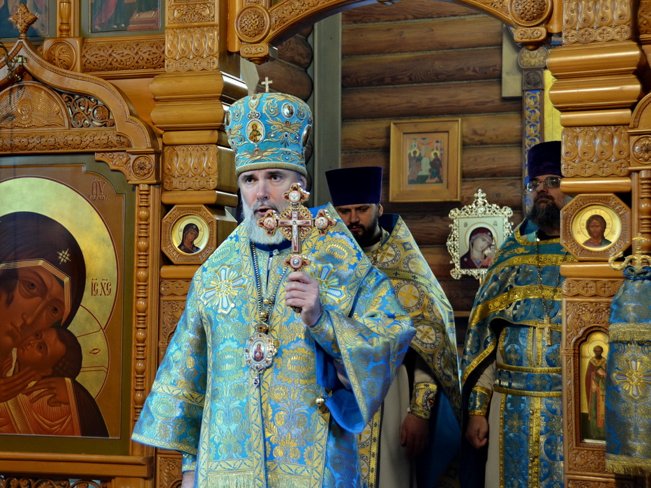 На сугубой ектении прозвучали особые прошения о защите и защитниках Отечества, епископ Алексий вознёс молитву о Святой Руси и молитву о примирении враждующих.