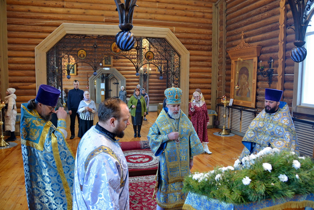 Владыке сослужили секретарь Епархиального управления иерей Владимир Данилко и благочинный Саянского церковного округа иерей Иоанн Гернеший.