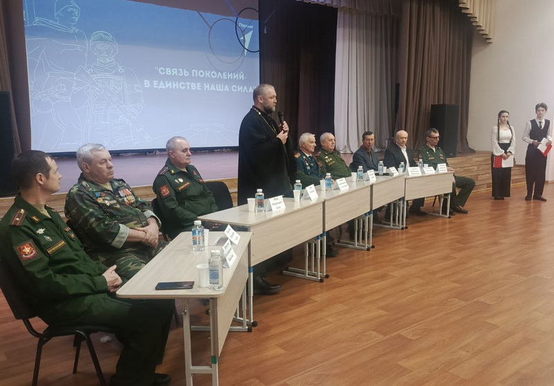 19 февраль 2026 года настоятель Нижнеудинского храма в честь апостолов Петра и Павла протоиерей Александр Ульянов стал участником встречи школьников и учащейся молодёжи с защитниками Отечества. Мероприятие состоялось в стенах школы №1 города Нижнеудинска. Ученики старших классов и студенты профессиональных образовательных учреждений смогли пообщаться с теми, кто прошел через испытания воинской службы в разные годы. Священник обратился к участникам мероприятия с пастырским словом. Говоря о защите Родины, он пояснил, что это понятие гораздо шире, чем воинский долг. Защищать — значит беречь историю, культуру, родной язык, заботиться о ближних и своим трудом делать страну сильнее. А это требует внутренней работы: воспитания в себе честности, милосердия, ответственности. Особый отклик у школьников вызвала мысль о том, что духовные традиции и патриотизм неразрывно связаны. По словам отца Александра, настоящий патриотизм невозможен без нравственной основы — без любви к людям, без готовности жертвовать личным ради общего блага.