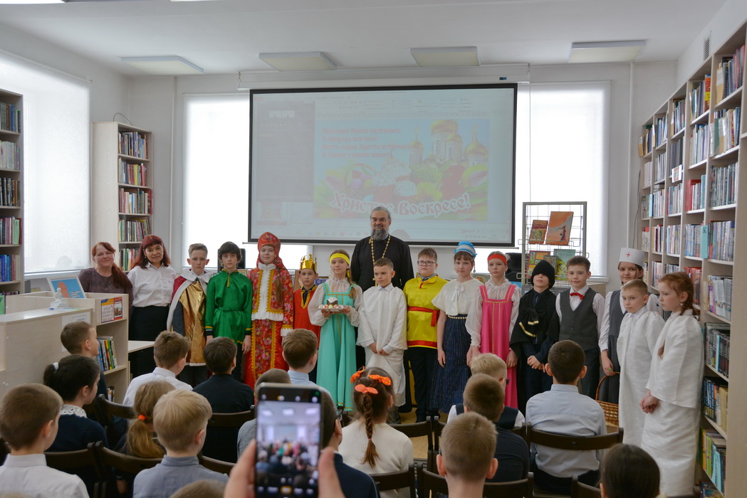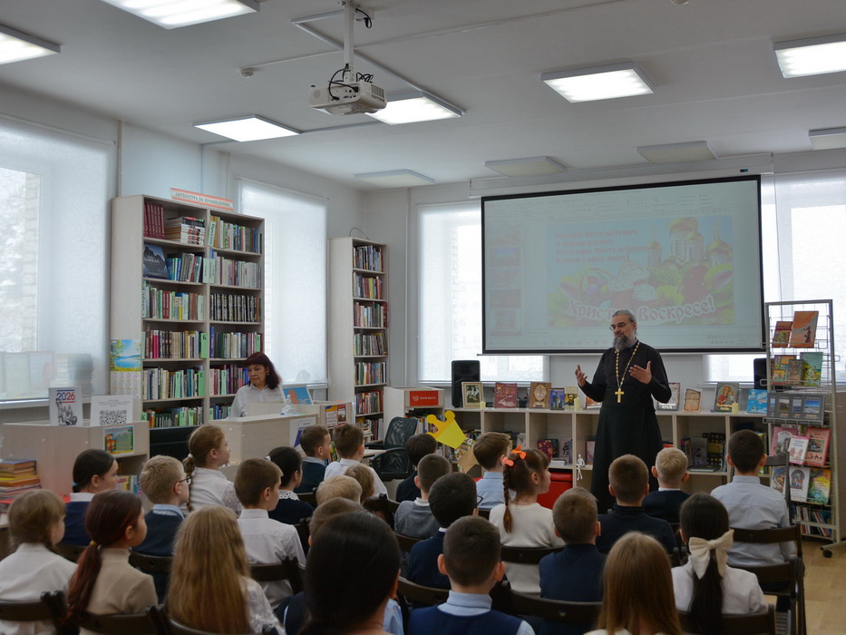 21 апреля 2026 года руководитель епархиального отдела религиозного образования иерей Владимир Данилко принял участие в просветительском мероприятии, посвящённом празднованию Пасхи Христовой. Состоялось оно в библиотеке “Истоки” Централизованной библиотечной системы г.Саянска с участием учащихся третьего класса школы № 8. Для детей было показано театрализованное представление по сказке “Премудрый царь”, которое подготовили ученики четвёртого класса школы № 4 под руководством педагога Н.С.Дуисеевой. Священник обратился к участникам мероприятия с приветственным словом, сказав о Воскресении Христовом и его значении для каждого человека. После представления отец Владимир обратил внимание школьников на духовно-нравственное содержание представленной сказки.