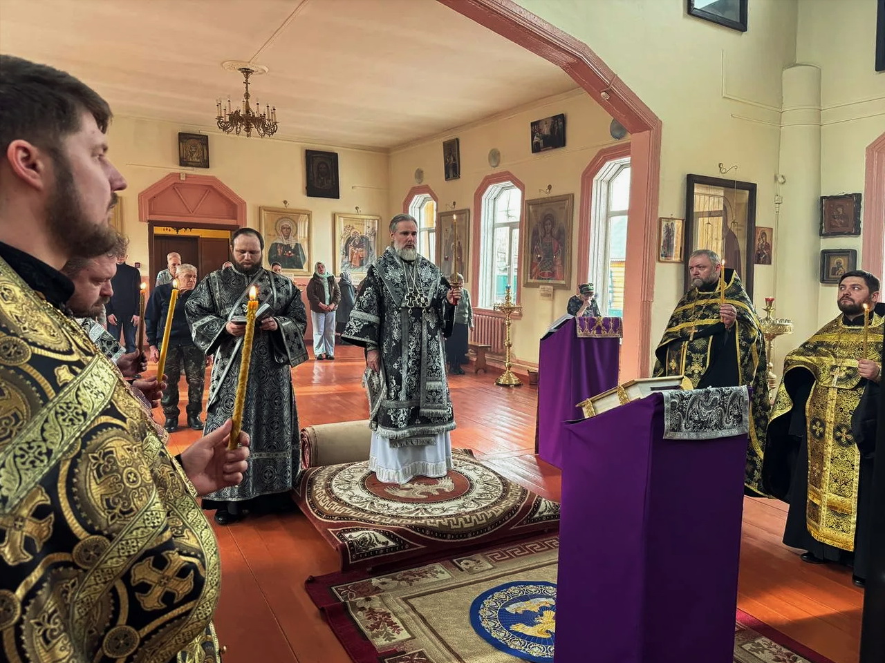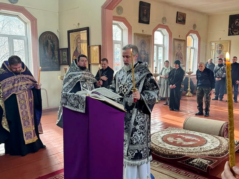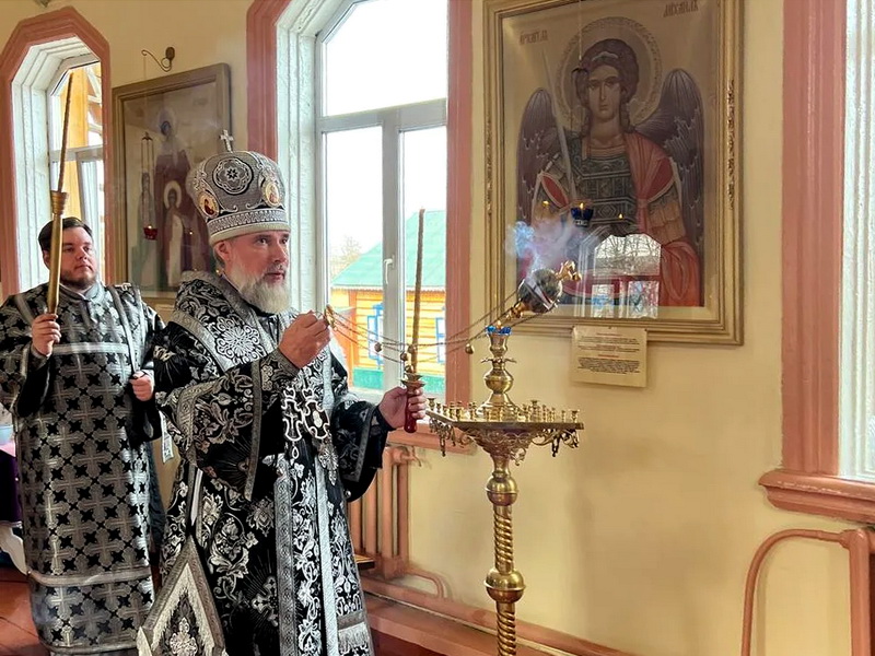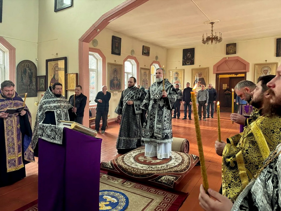 Вечером Воскресного дня 22 марта 2026 года епископ Саянский и Нижнеудинский Алексий совершил вечерню с чтением акафиста Страстям Христовым (чинопоследование пассии).