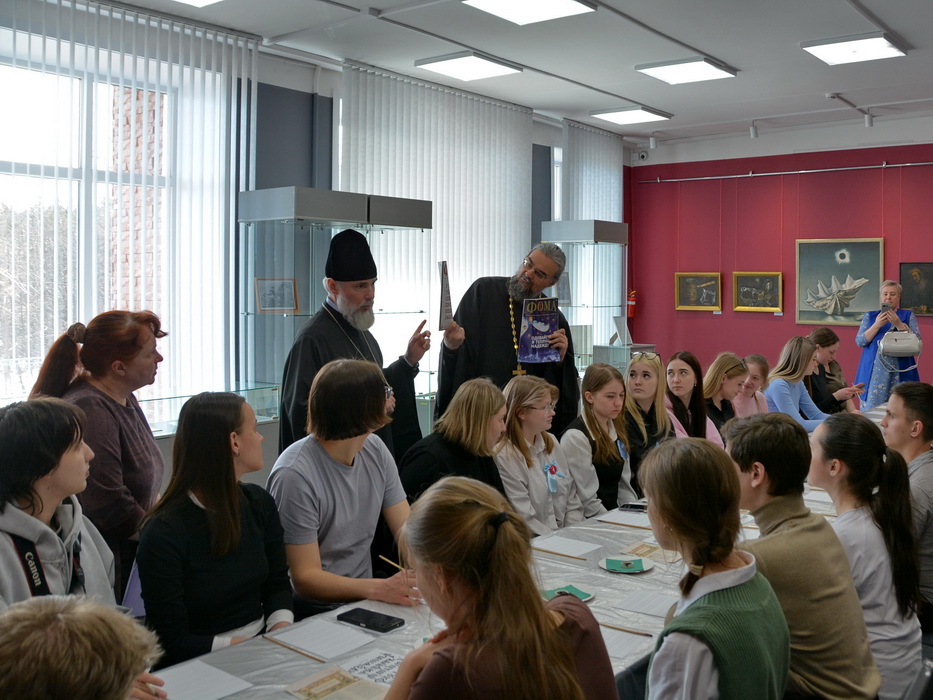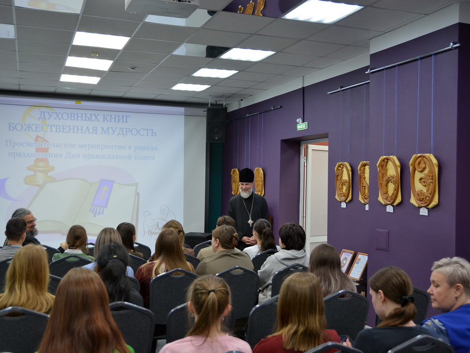 25 марта 2026 года епископ Саянский и Нижнеудинский Алексий принял участие в проведении культурно-просветительского мероприятия, посвящённого Дню православной книги. Мероприятие было подготовлено городским музейно-выставочным комплексом совместно с отделом религиозного образования Саянской епархии и состоялось в Саянской картинной галерее. Сотрудник учреждения культуры Наталья Астраханцева выступила с рассказом о деятельности русского первопечатника, а сотрудник епархиального отдела Людмила Невидимова представила книги и авторов современной православной прозы. Слушателями стали учащиеся медицинского колледжа и химико-технологического техникума. Для молодых людей была оформлена книжная выставка из фондов Центральной городской библиотеки и библиотеки Саянского Благовещенского храма. Епископ Алексий обратился к молодым людям со словами о важности чтения и ответственного подхода к выбору книг. Владыка призвал слушателей к прочтению Евангелия и посоветовал учащимся журнал “Фома”, материалы которого доступны в электронном виде. В завершение мероприятия сотрудники музейно-выставочного комплекса провели для студентов мастер-класс по начертанию буквиц.