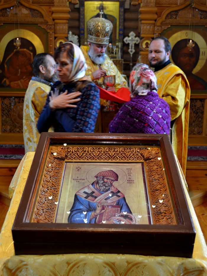 Перед причастием верующих Святых Христовых Таин иерей Иоанн Гернеший произнёс проповедь в прославление святителя Спиридона.