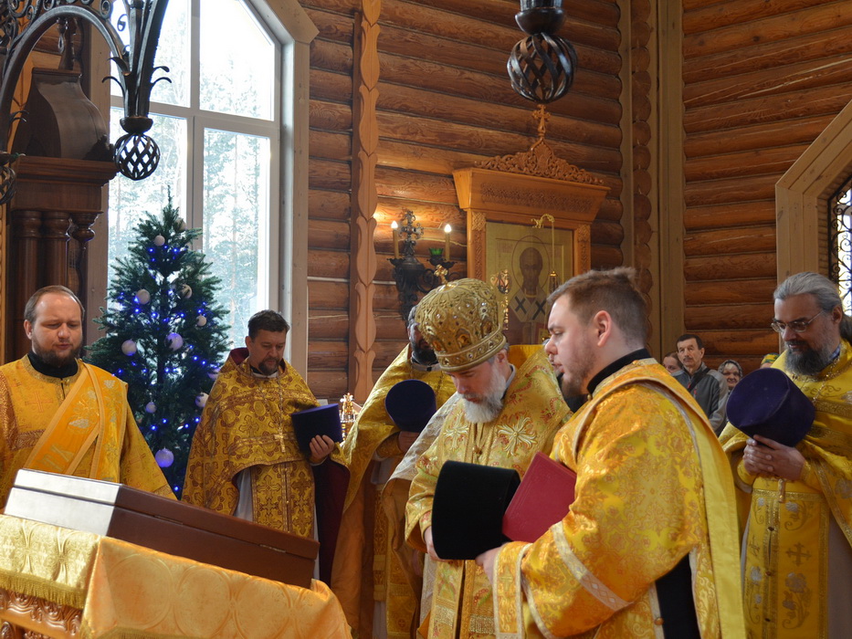 Владыке сослужили благочинный Тайшетского церковного округа протоиерей Валерий Лысенко, протоиерей Павел Талалаев, благочинный Тулунского церковного округа иерей Феодор Корбатов, благочинный Саянского церковного округа иерей Иоанн Гернеший, иерей Евгений Семке.