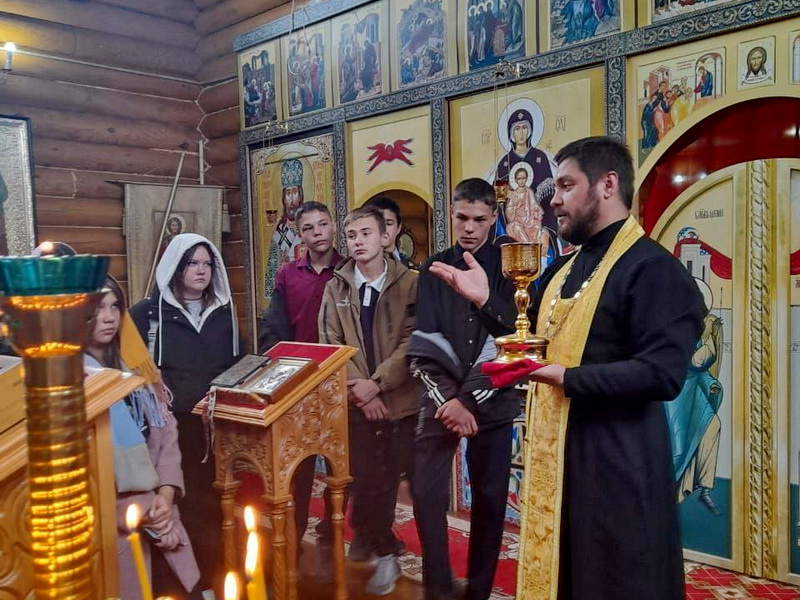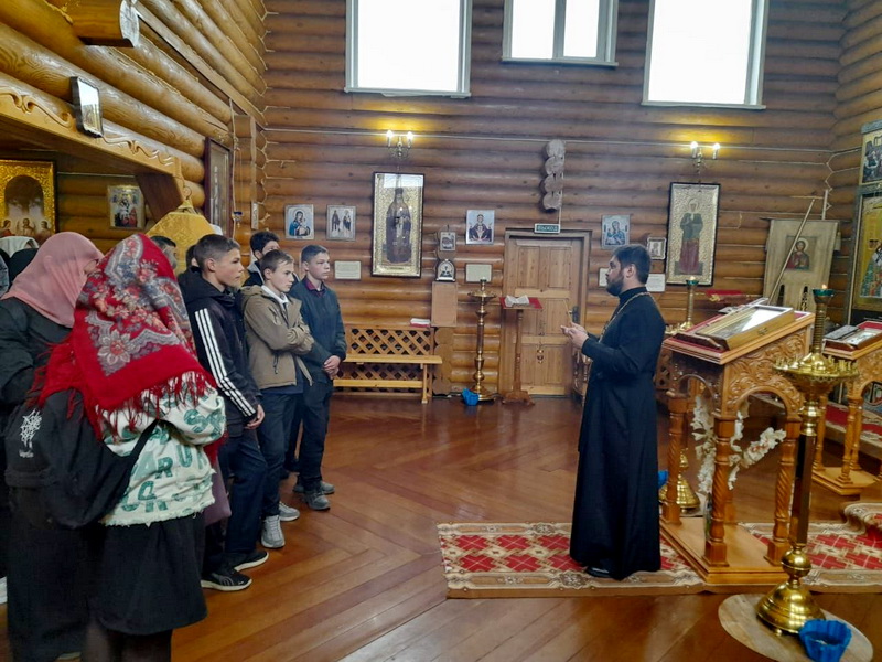 30 сентября 2025 года в храме в честь иконы Божией Матери “Взыскание погибших” г.Алзамая состоялись просветительские экскурсии. Храм посетили воспитанники Дома детского творчества и восьмиклассники двух классов школы N2. Настоятель храма иерей Владимир Ильницкий провел экскурсию с рассказом о храме и о богослужении, состоялась беседа священника со старшеклассниками о духовных основах жизни.
