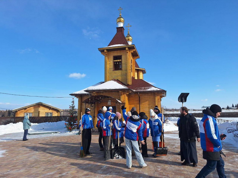 27 февраля руководитель епархиального отдела встретился с группой волонтеров из областного отряда “Созвездие”. Молодые люди прибыли в Нижнеудинск в рамках акции “Снежный десант” из Иркутска. Встреча состоялась в Свято-Никольском храме села Худоеланское, настоятелем которого является иерей Владимир Чичков. Волонтеры помогли прихожанам храма в расчистке прихрамовой территории от снега. После работы для них было организовано чаепитие со священником. За чашкой чая состоялся общий разговор на тему что такое волонтерство и чем важно для жизни человека добровольное участие в добрых проектах. Отец Владимир рассказал молодым людям о церковных молодежных проектах и о молодежном клубе, который действует при храме.