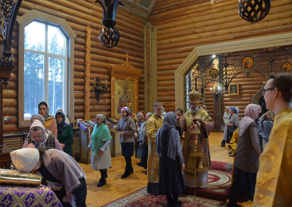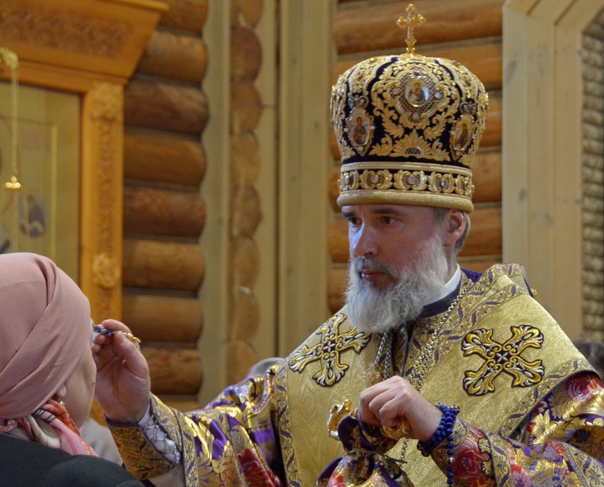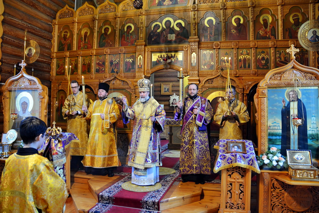 Владыке сослужили секретарь Епархиального управления иерей Владимир Данилко, благочинный Саянского церковного округа иерей Иоанн Гернеший, иерей Евгений Семке.