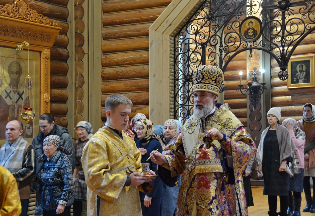 На утрени, после чтения Евангелия, епископ Алексий совершил помазание верующих благословенным елеем.