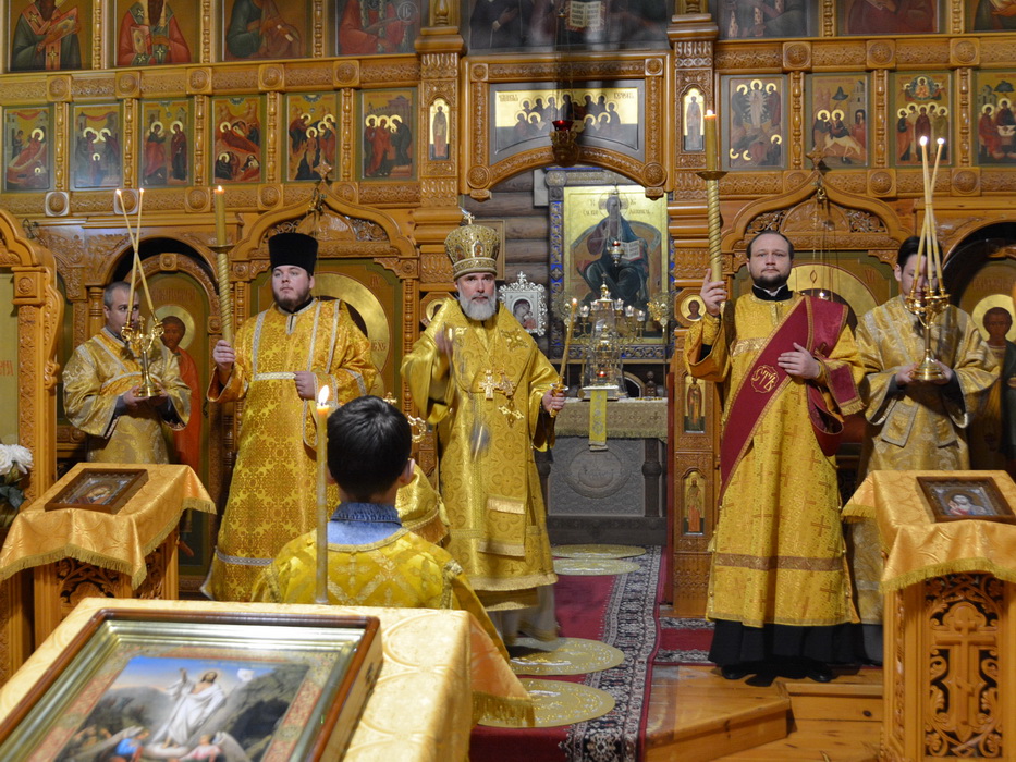 Богослужение состоялось в кафедральном Благовещенском храме в городе Саянске. Владыке сослужили секретарь Епархиального управления иерей Владимир Данилко, благочинный Саянского церковного округа иерей Иоанн Гернеший.