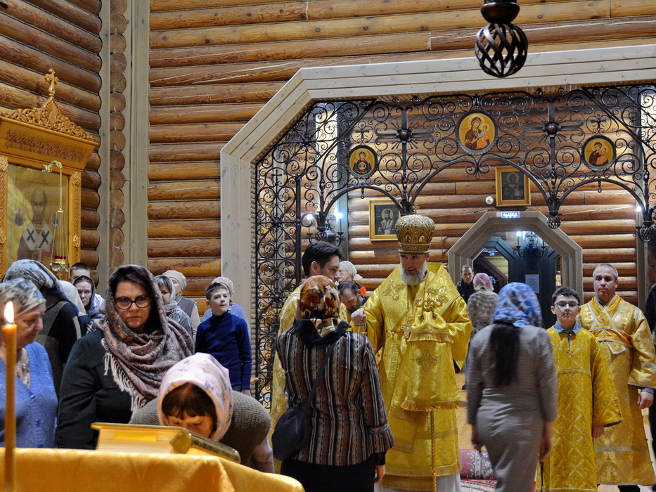 На Утрени, после чтения Еванелия, епископ Алексий совершил помазание верующих благословенным елеем.