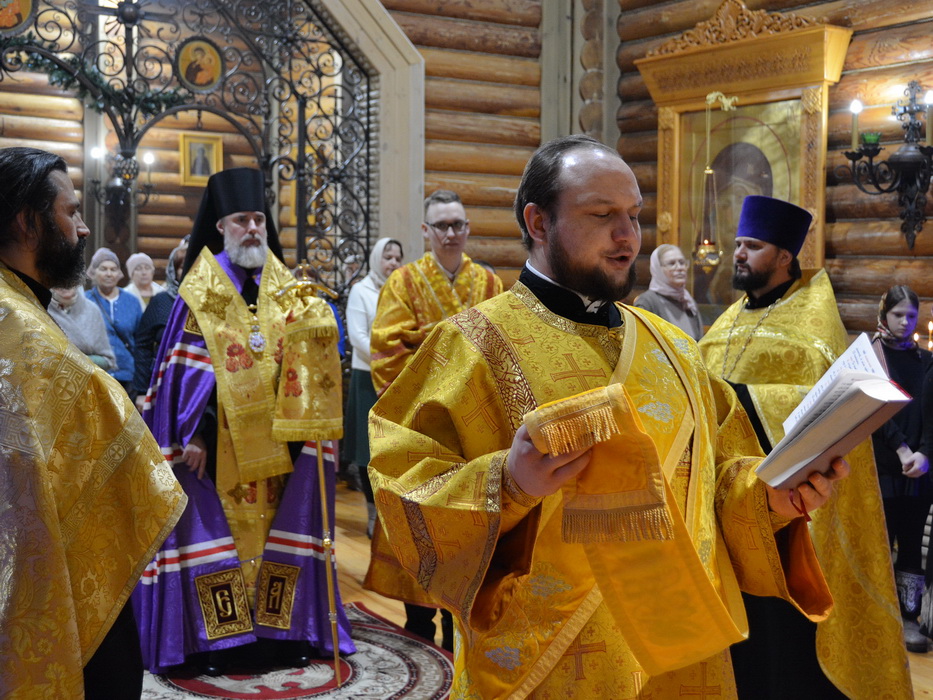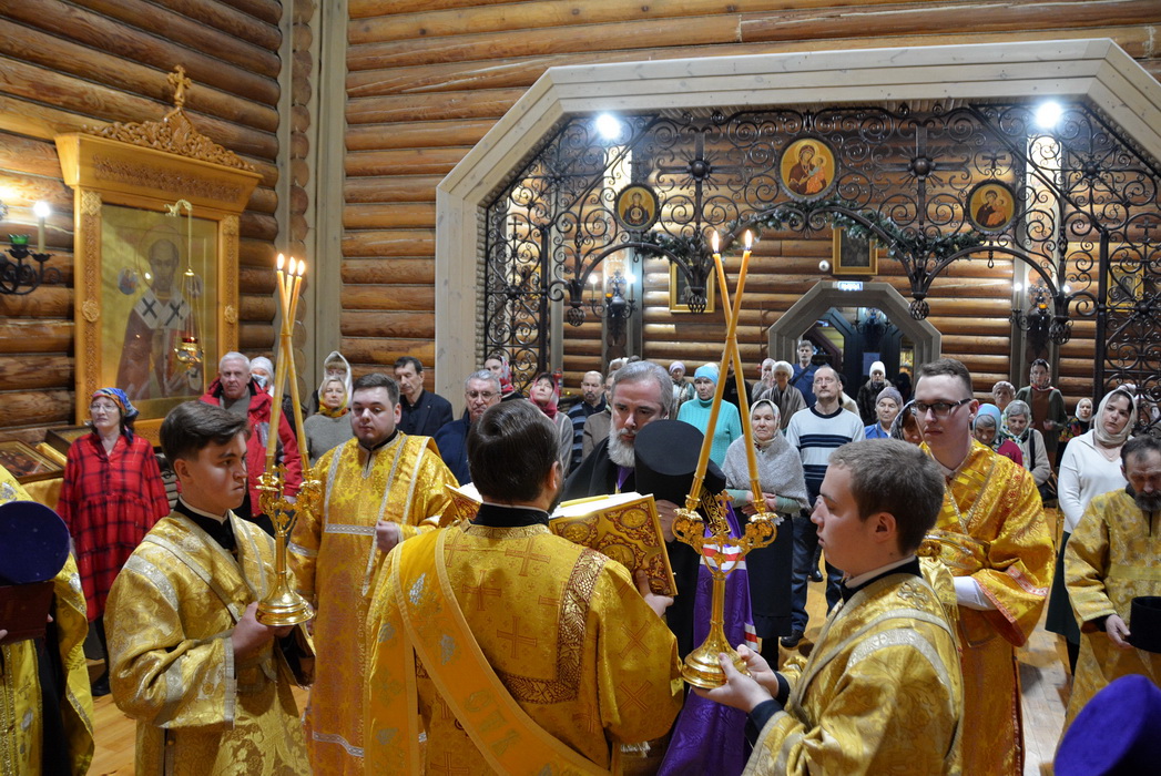 Владыке сослужили секретарь Епархиального управления иерей Владимир Данилко, благочинный Саянского церковного округа иерей Иоанн Гернеший, иерей Евгений Семке.